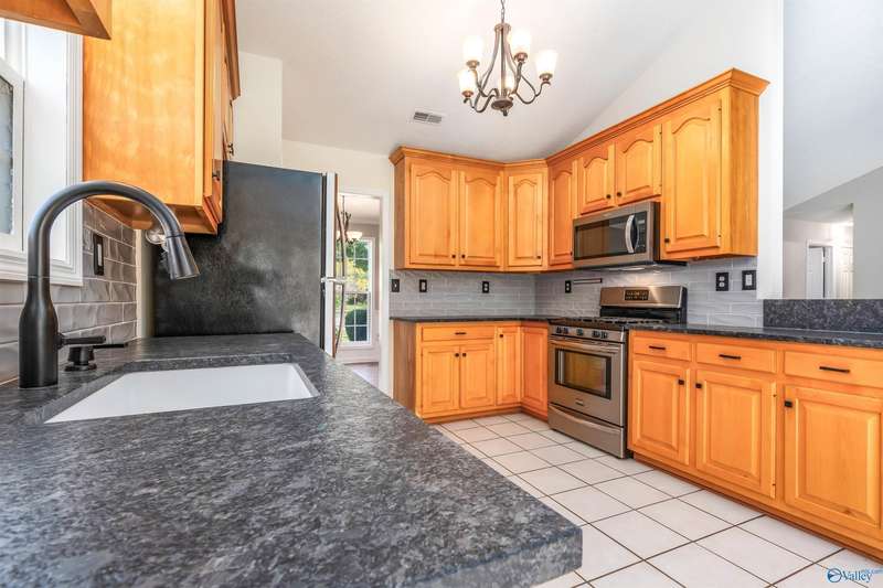 Welcome to 122 Sunnyfield Drive, a beautifully updated 3 bedroom, 2 bath full brick home in a quiet Madison neighborhood. The kitchen boasts leathered granite, a custom tile backsplash, stainless steel appliances including refrigerator, and a gas stove. Fresh paint, new laminate flooring, and upgraded fixtures run throughout the home. The luxury master suite features quartz-topped cabinetry, a soaking tub, and spa shower. Outside, enjoy a flat fenced backyard with mature Japanese maples, a blueberry garden, and space for gatherings. Curb appeal shines with a beautifully landscaped front yard and timeless brick exterior. Conveniently located near shopping, dining, and top-rated schools.