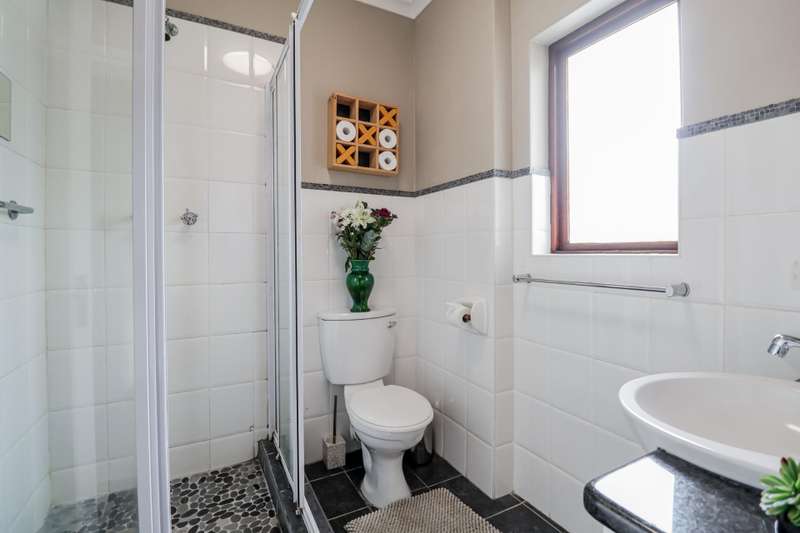 Heading upstairs, the level features well-appointed bedrooms with comfortable layouts and plenty of natural light. The master bedroom includes an en-suite bathroom., buit-in Cupboards, and a private patio, offering a perfect spot for enjoying morning coffee or reading a book. . The second bedroom is a double room with builtin cupboards and the third bedroom is e-suite with a shower and toilet.