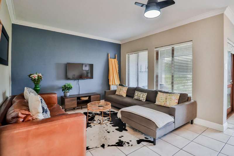 As you enter the apartment, you are greeted by a bright and inviting living area on the lower level. The open floor plan seamlessly connects dining area and lounge, which lead onto an outdoor patio where you can enjoy a braai and the garden on warm evenings.