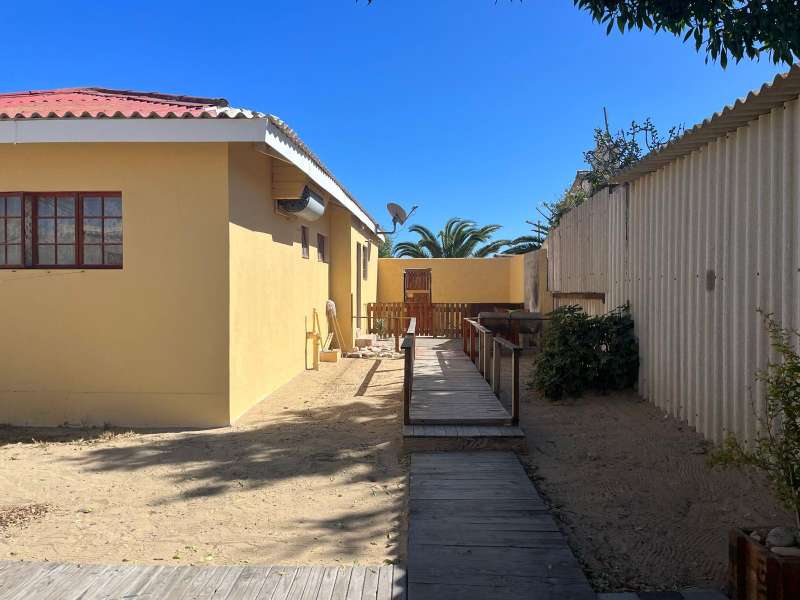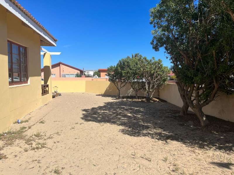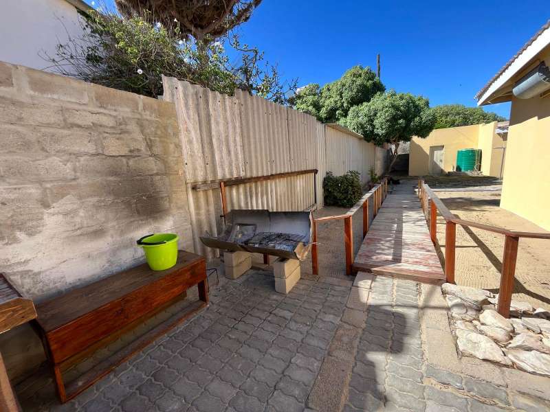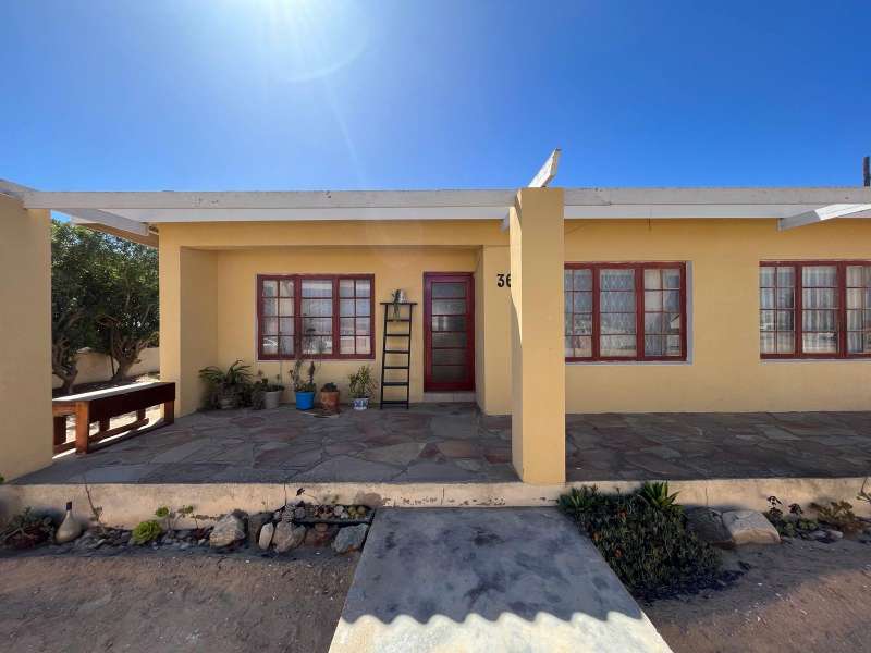 Nice and comfortable open plan family home situated in Port Nolloth with partial sea view. (626m2) 3 bedroom and 1 bathroom. Open plan lounge dining and kitchen area. double garage separate from house. Large yard totally walled and very secure. Additional outdoor room with toilet (to be renovated) which can be used as pleased. Also has a stoep area with sea view. Pump & tank. One of the last low priced houses.