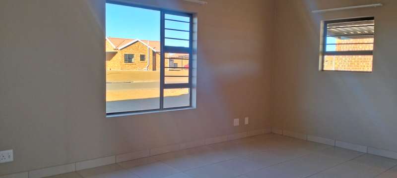 This lovely 2-bedroom house features a spacious open-plan layout that seamlessly blends living, dining, and kitchen areas, creating a cozy and inviting atmosphere. The modern kitchen is equipped with elegant built-in cupboards, a stove, and an oven, perfect for those who love to cook. A solar geyser adds energy efficiency, ensuring hot water is always available while keeping utility costs down. Abundant natural light fills the space, enhancing its warm ambiance. Step outside to a large yard that offers plenty of room for expansion or outdoor activities—ideal for gardening, playtime, or future projects. With secure parking included, you can enjoy peace of mind and easy access to your vehicle whenever you need it. This home is a tranquil retreat, perfect for relaxation. Don’t let this opportunity slip away—schedule your viewing today and take the first step toward owning this charming property!