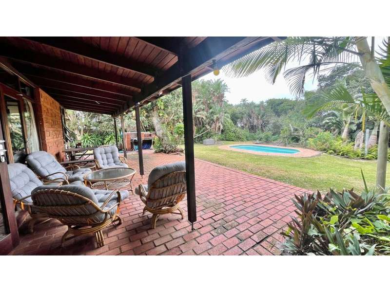 BEACH HOME - 3 BEDROOMS PLUS GUEST COTTAGE Enjoy the luxury of beach front living. This coastal home is solid is light and breezy. Open plan living and dining with a gully kitchen and serving counter. The doors open from the living room to the patio which extends the entire length of the house. 3 bedrooms and 3 bathrooms. All rooms are air-conditioned and the property is sold fully furnished. In addition there is a one bedroom flatet plus a laundry. Beautiful swimming pool and garden and a built in braai. Direct access to the beautiful beach with its abundance of rock pools and great fishing spots. This is well secured property.