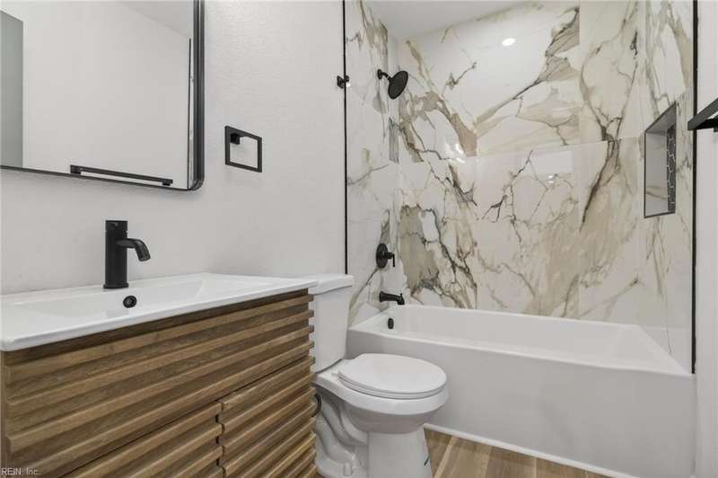 Welcome to you freshly remodeled Chesapeake charmer! This home shines inside and out with a brand-new roof, new windows, updated electrical and plumbing, and a brand-new HVAC system keeping you comfortable year-round. Step inside to discover new flooring throughout, a sleek kitchen with new stainless-steel appliances, and two beautifully designed full bathrooms- including an ensuite bedroom for extra comfort and privacy. With 3 bedrooms and 2 baths across 1,085 square feet, this home feels bright, modern, and ready to impress! Enjoy endless hot showers with your new tankless water heater, and relax knowing every major system is brand new. Outside, you'll love the brand-new fence that surrounds the entire lot-great for pets or privacy-and the detached garage with new electrical wiring for your projects or extra storage. Conveniently located near shops, schools, and interstates, this home blends style, comfort, and peace of mind from top to bottom. All that's left to do is move in!