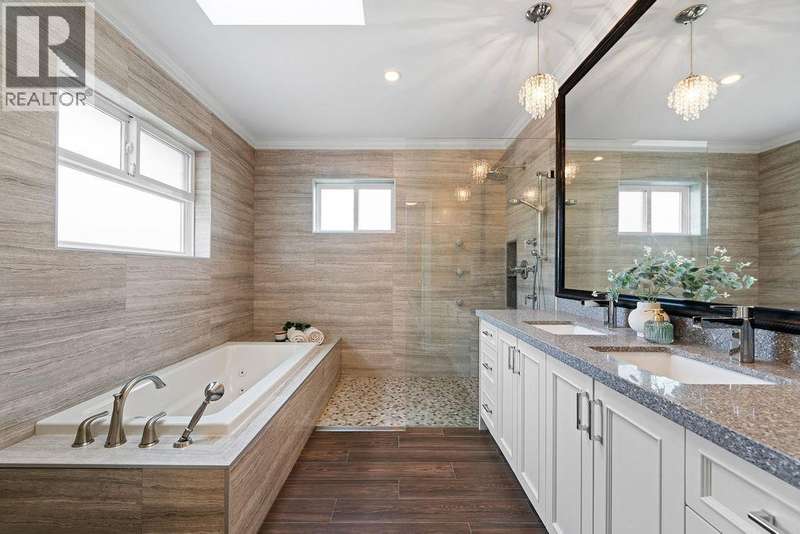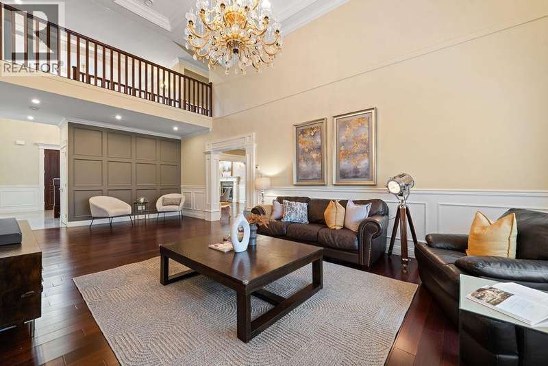 Welcome to this spectacular custom-built residence on a prime, sunny corner lot! A grand foyer with soaring ceilings makes a stunning first impression. The expansive main floor is an entertainer's dream, featuring huge living and family rooms, a gourmet kitchen with a large island, and two bedrooms. Upstairs boasts 3 more spacious bedrooms, all ensuited, including a grand master retreat. Unwind in the luxurious 5-piece master bath with a double vanity, separate shower & soaker tub. Enjoy ultimate year-round comfort with AC, radiant heat, HRV & a security system. An oversized garage completes this perfect family home, in a sought after neighbourhood close to schools and the community centre. Open Sat Nov 15th, 1-3pm. (id:58403)