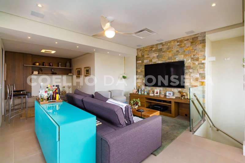 Execelente cobertura duplex, totalmente reformada com qualidade e muito bom gosto. 1o piso: living com varanda, trazendo muita luminosidsde natural ao ambiente. sala de jantar com portas de correr para a cozinha aberta para a sala. Suite master com closet, foi ampliada com parte do 3o dormitório, com facil retorno, e outra parte ampliou o living. Mais um banheiro que atende o 2o dormitorio, com armarios planejados. area de serviço também com armarios planejados. Lavabo. 2o piso: Ampla sala com TV, area gourmet, bela bancada com armarios, geladeira side by side, mesa de jantar, banheiro completo. sendo possivel voltar a ter um dormitório. Excelente area externa com piscina e sol o dia inteiro. predio com playgroud, briquedoteca, quadra poliesportiva e piscina. Vagas para visitantes e 3 vagas soltas do apartamento.