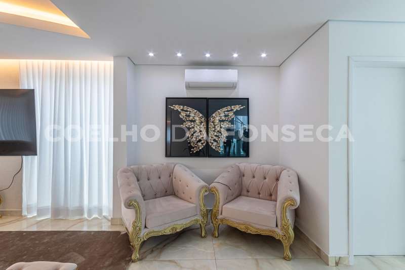 Acabamentos de alto padrão em todos os ambientes, incluindo piso em porcelanato, granito nas pias e revestimentos de qualidade.