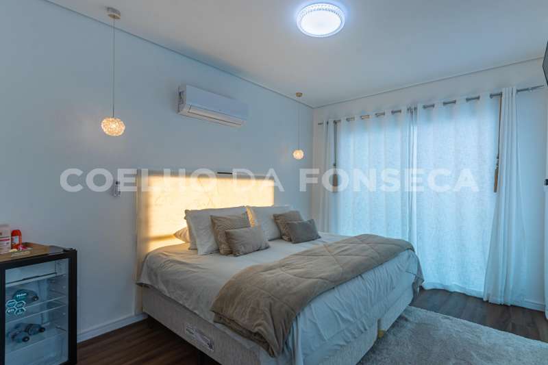 4 suítes amplas e luminosas, todas com armários planejados e a suíte master com closet e hidromassagem.