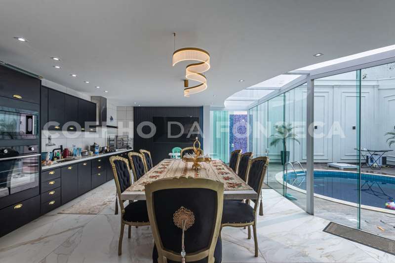 Espaço gourmet completo com churrasqueira, piscina aquecida e área de estar, perfeito para receber amigos e familiares.