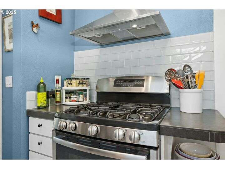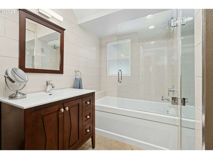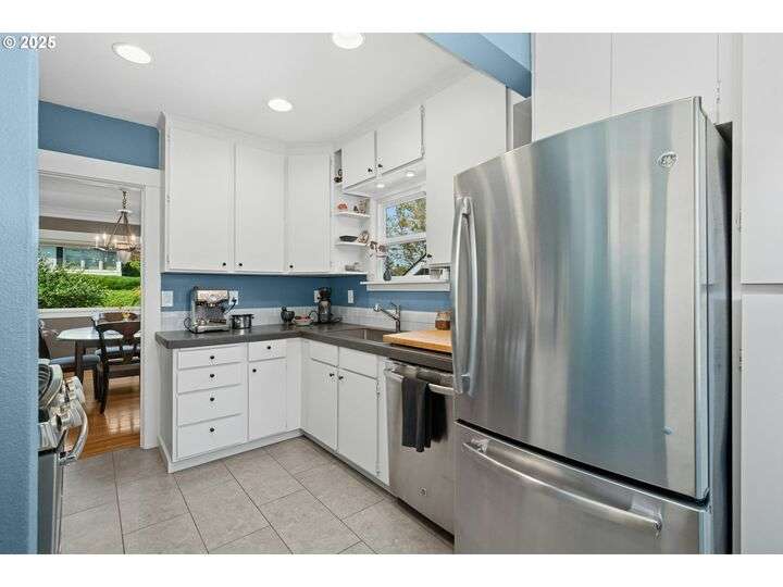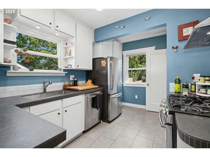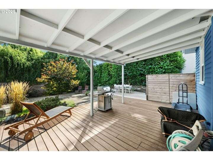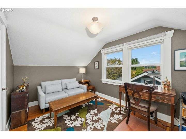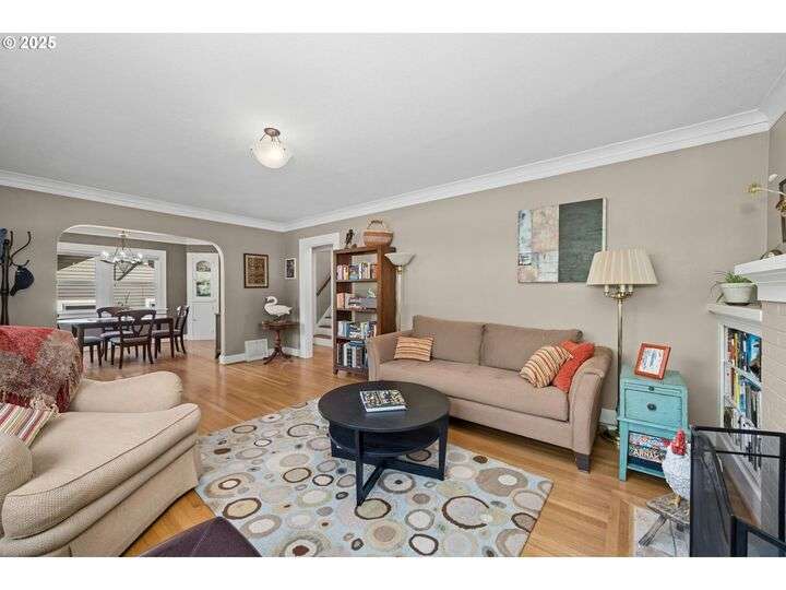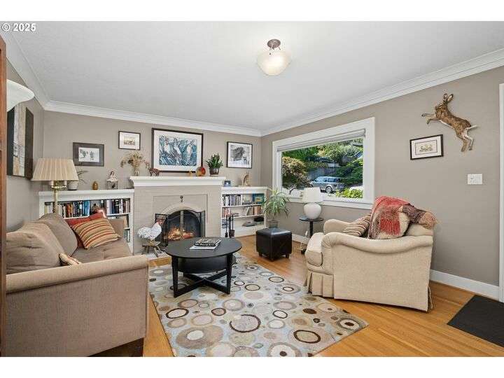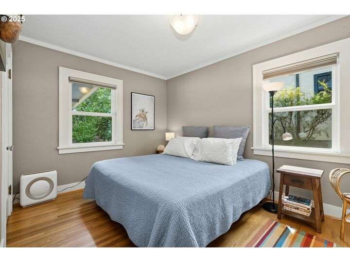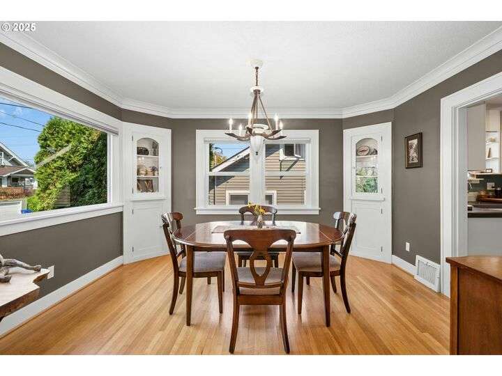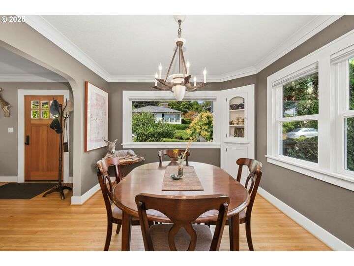 Charming 1920’s bungalow in desirable North Tabor/Montavilla neighborhood. Spacious living room with fireplace and original built-in cabinets. Formal dining room with built-in corner cabinets. Classic coved ceilings, crown molding, and top-nailed hardwood floors on main. Remodeled kitchen with 5-burner gas range, stainless steel hood and deep, turkey-roaster sized sink. Primary bedroom and remodeled bathroom with soaking tub/shower, limestone tile floor, and heated towel rack. Beautiful fir floors in both bedrooms upstairs. Basement has two bonus areas—one with sleeping area (window is non-conforming) and a sitting area—plus a full bathroom, laundry area, and a large storage room. Enjoy summer BBQs with family & friends on your huge, covered back deck. Peaceful, private back yard with lovely landscaping and fenced for your 4-legged friends. Convenient to many local shops and restaurants—come see for yourself! [Home Energy Score = 4. HES Report at https://rpt.greenbuildingregistry.com/hes/OR10241517]