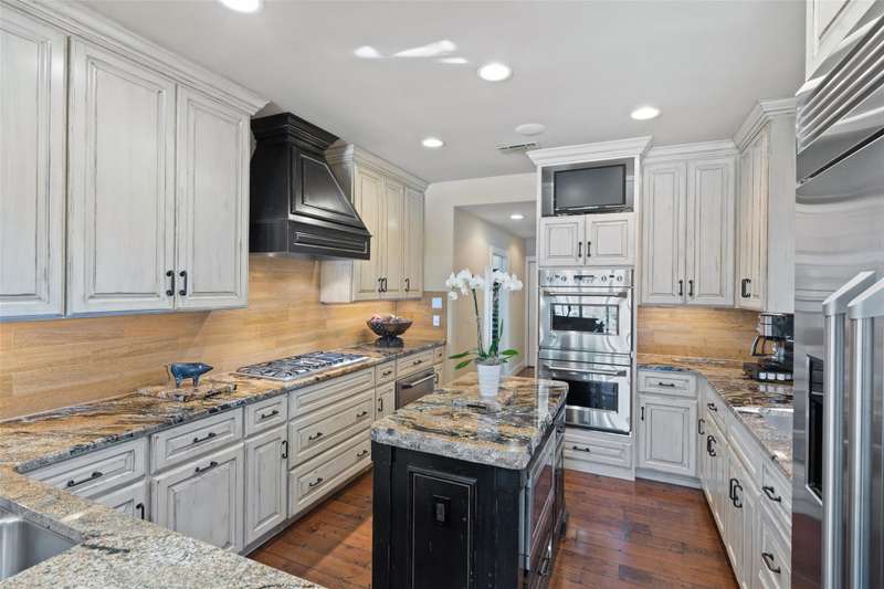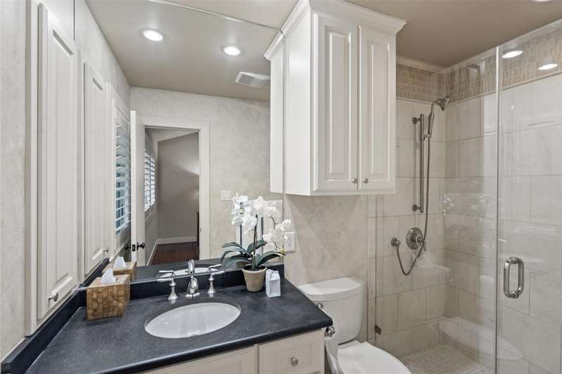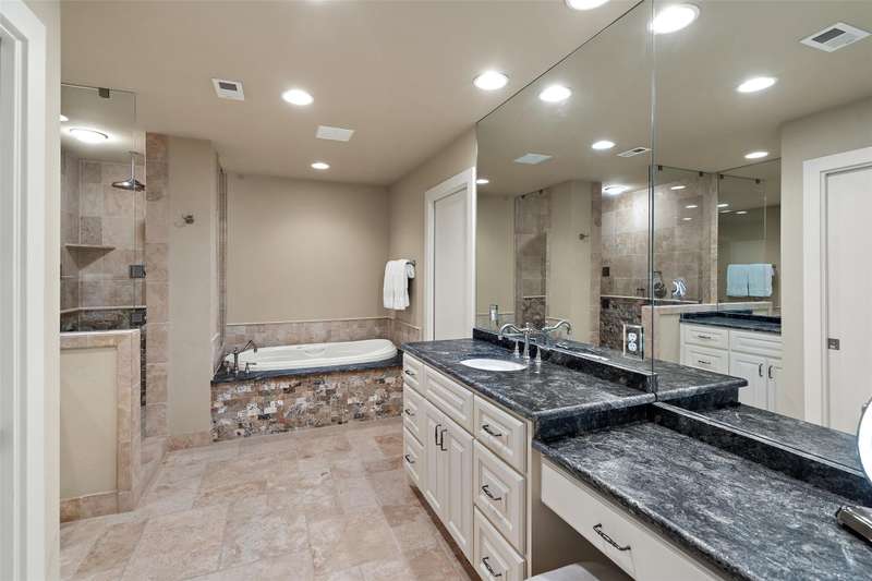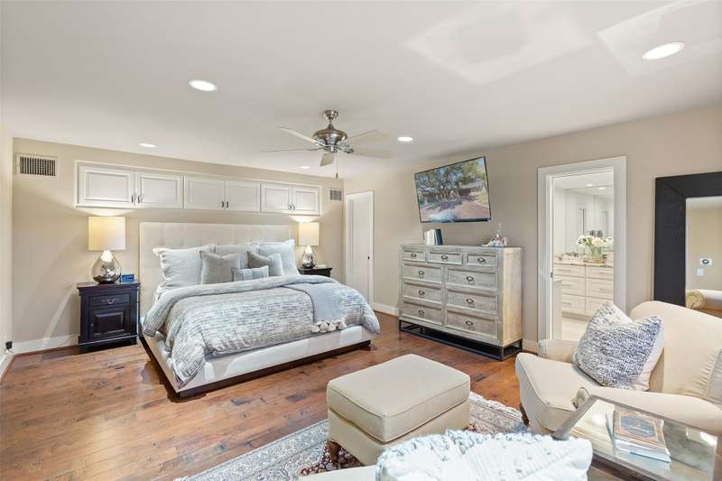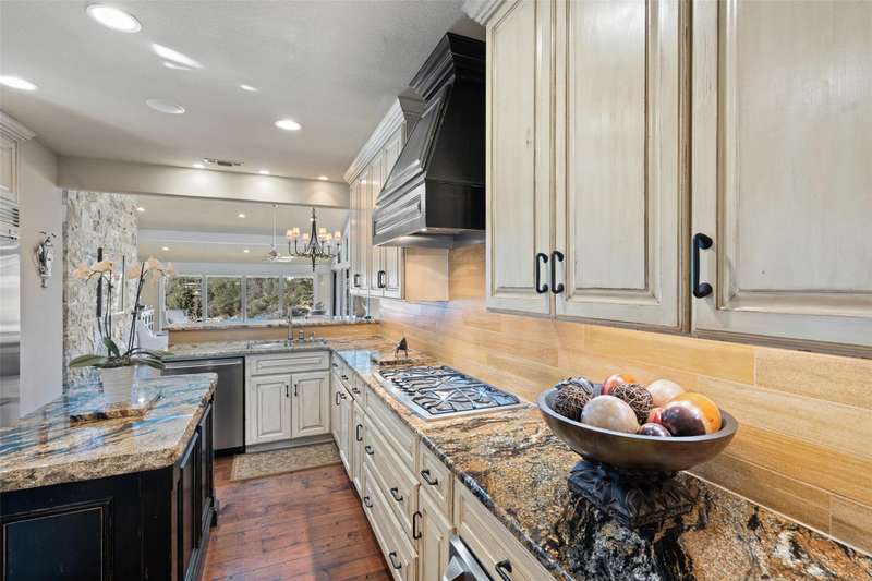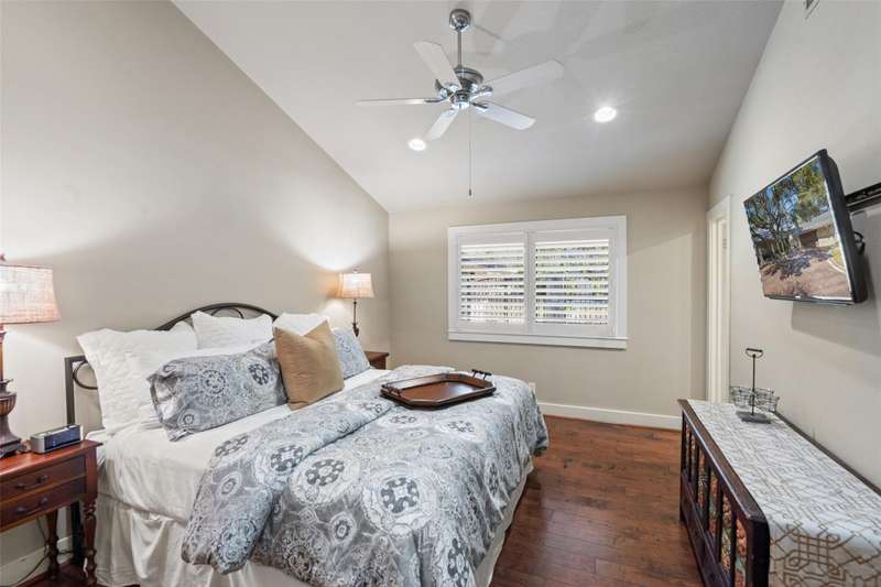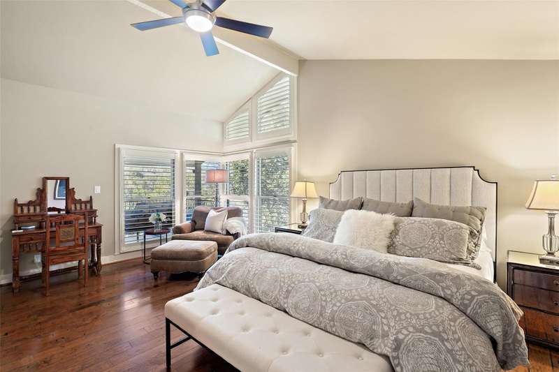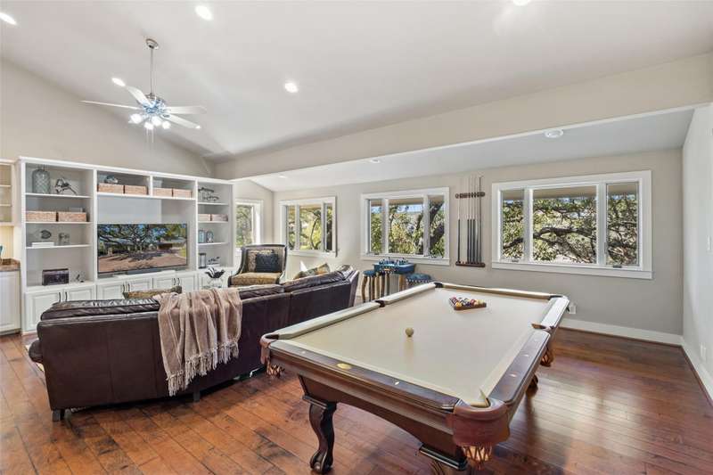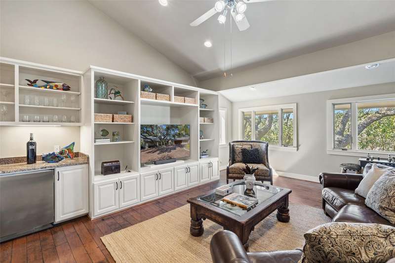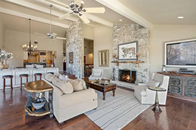 The Lake is up and the price is down! Opportunity is knocking, this mid-century house is the perfect lakefront getaway. Built for casual entertaining, all eyes are focused on the incredible setting overlooking Lake Travis. Built in 1975 with several refreshes, this home provides an oasis of tranquility and privacy. The floor-to-ceiling windows and doors open the living room to the outside patio where hosting, grilling and endless views are offered. Three ensuite bedrooms are on the main level including the primary along with an additional primary ensuite downstairs. Two living areas, dining, an office, powder bath and walk-in pantry round out the flow.
