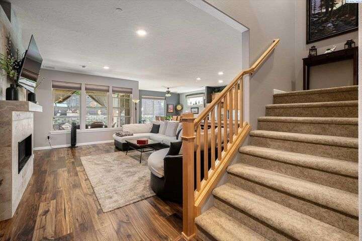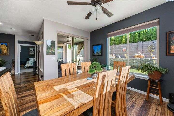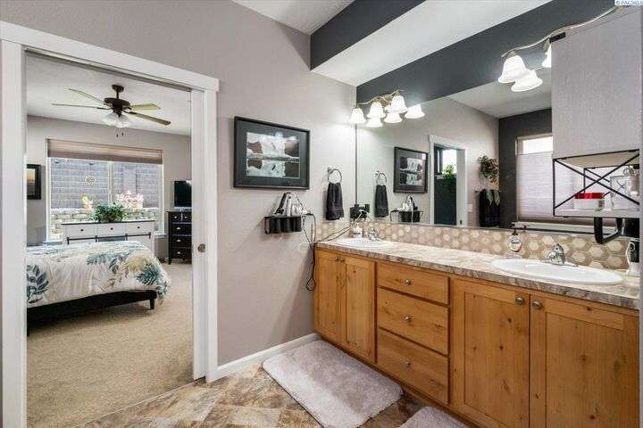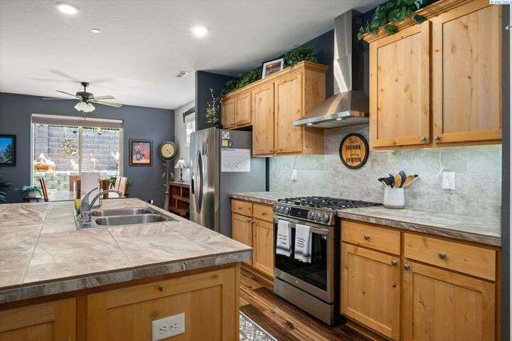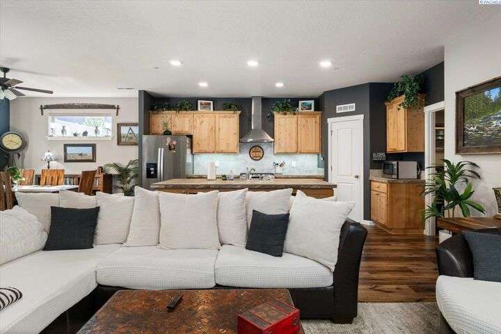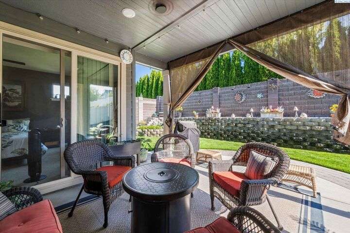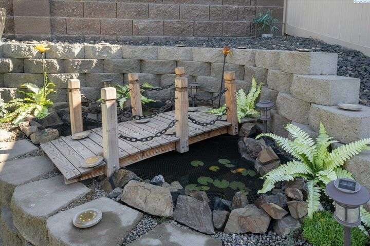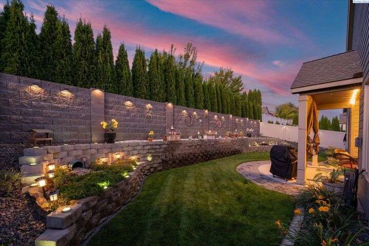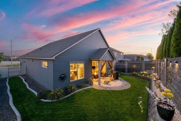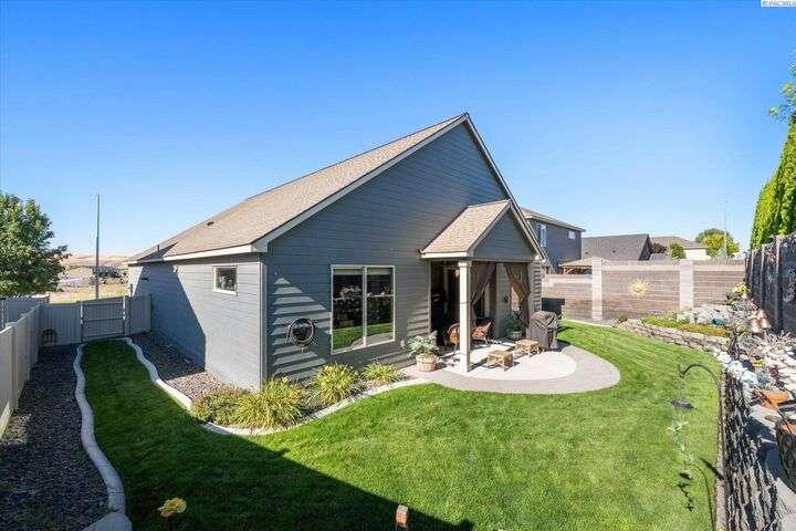 MLS# 286886 Discover the Silverton plan by New Tradition Homes, beautifully maintained and thoughtfully updated. This single-level design includes 3 bedrooms, 2 bathrooms, and a large bonus room above the garage—ideal for a media room, home office, or guest retreat. The open great room, anchored by a cozy gas fireplace, flows seamlessly into the kitchen and dining area. From there, step outside to a covered patio and your very own backyard oasis—professionally landscaped with a tranquil koi pond, block fencing, ambient lighting, and lush greenery that creates a private retreat for year-round enjoyment. Inside, the primary suite provides a relaxing escape with a spacious walk-in closet and a large bathroom featuring dual vanities, a soaking tub, and a separate shower. Set in a quiet community near the backside of Badger Mountain, this home is just a short walk to the neighborhood park and Country Mercantile, with shopping and wineries only minutes away. This home truly has it all—very well maintained, stylish, and ready to enjoy inside and out. Ask about our preferred lender buyer incentive!!