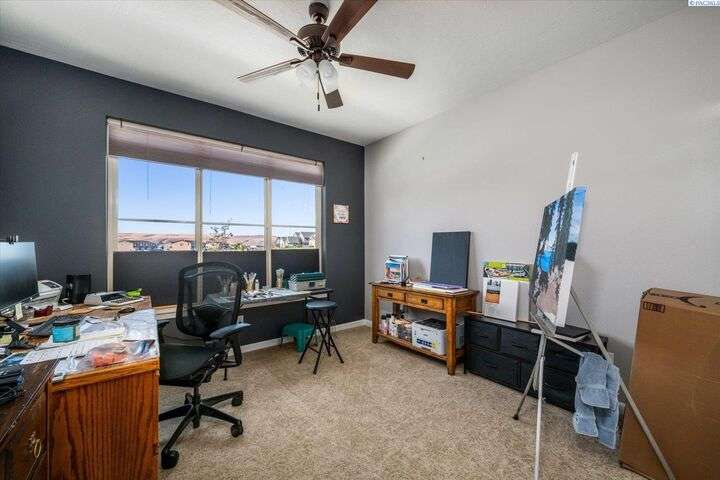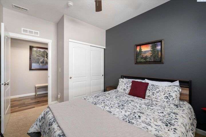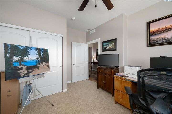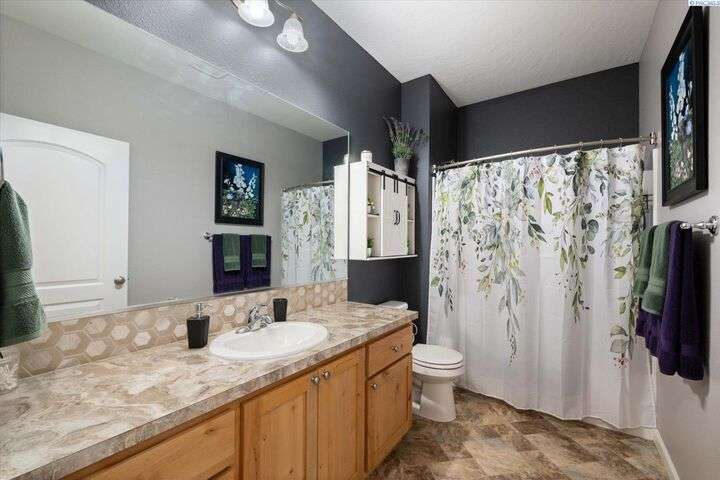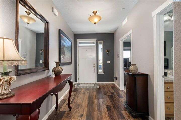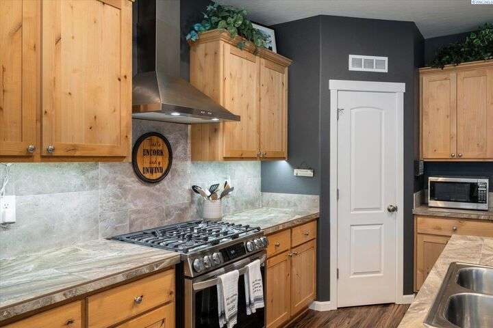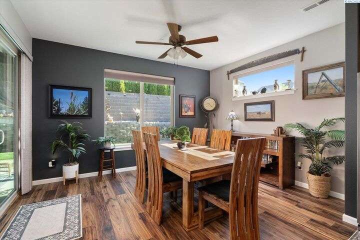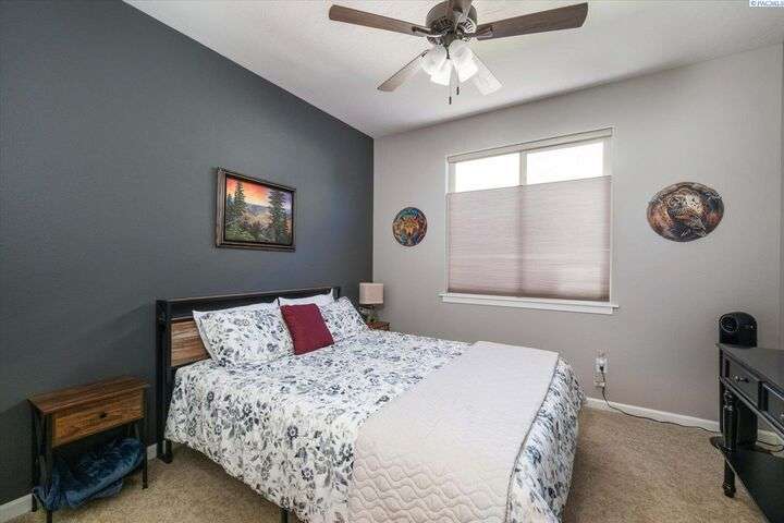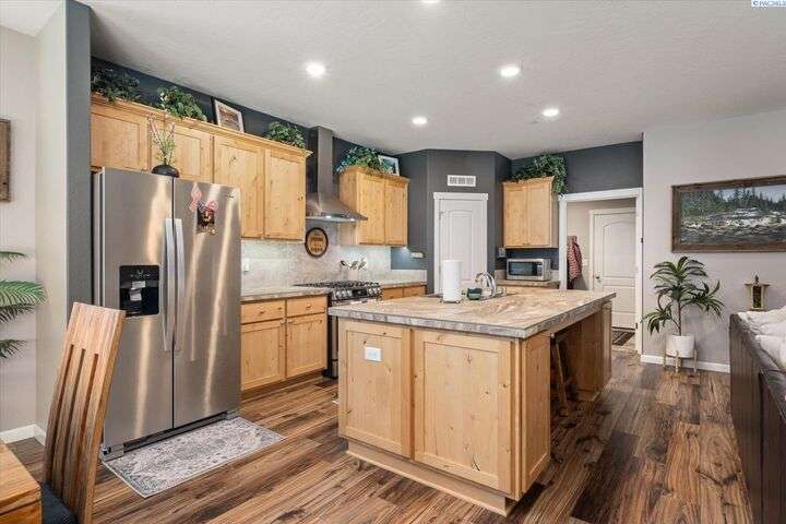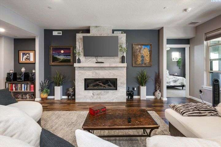 MLS# 286886 Discover the Silverton plan by New Tradition Homes, beautifully maintained and thoughtfully updated. This single-level design includes 3 bedrooms, 2 bathrooms, and a large bonus room above the garage—ideal for a media room, home office, or guest retreat. The open great room, anchored by a cozy gas fireplace, flows seamlessly into the kitchen and dining area. From there, step outside to a covered patio and your very own backyard oasis—professionally landscaped with a tranquil koi pond, block fencing, ambient lighting, and lush greenery that creates a private retreat for year-round enjoyment. Inside, the primary suite provides a relaxing escape with a spacious walk-in closet and a large bathroom featuring dual vanities, a soaking tub, and a separate shower. Set in a quiet community near the backside of Badger Mountain, this home is just a short walk to the neighborhood park and Country Mercantile, with shopping and wineries only minutes away. This home truly has it all—very well maintained, stylish, and ready to enjoy inside and out. Ask about our preferred lender buyer incentive!!