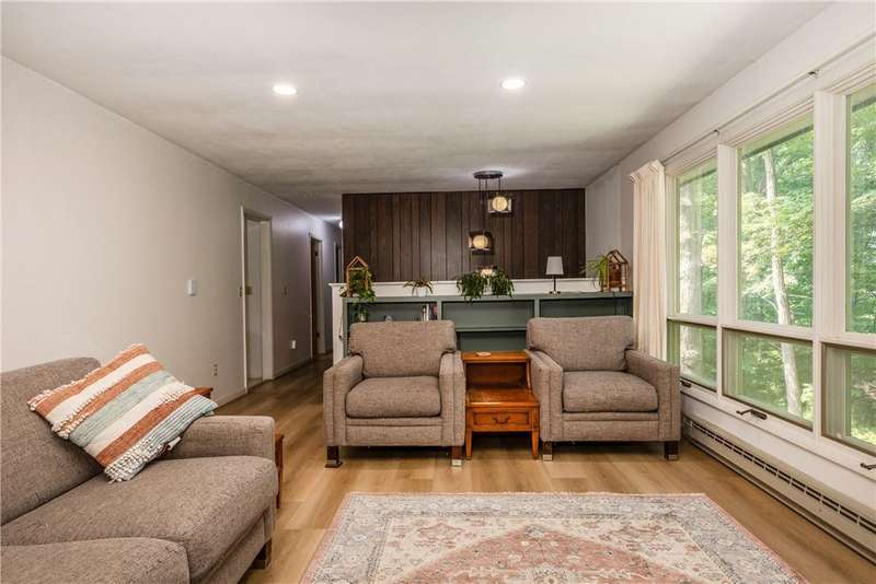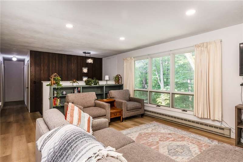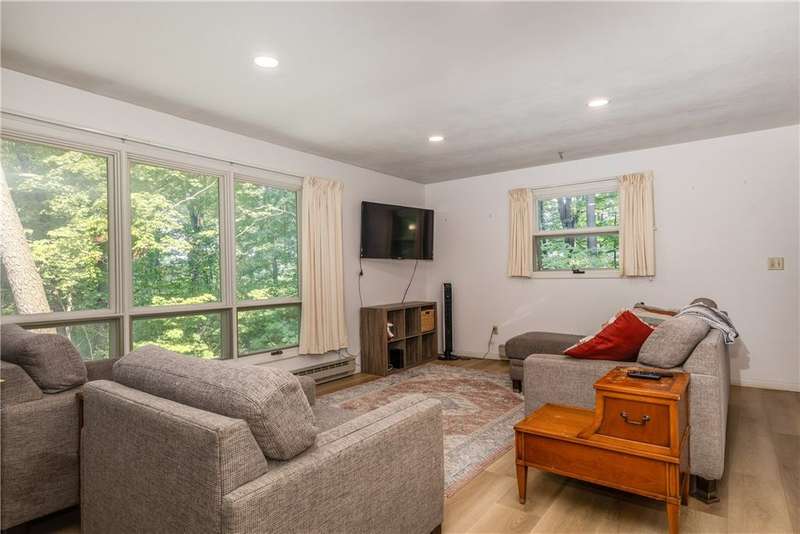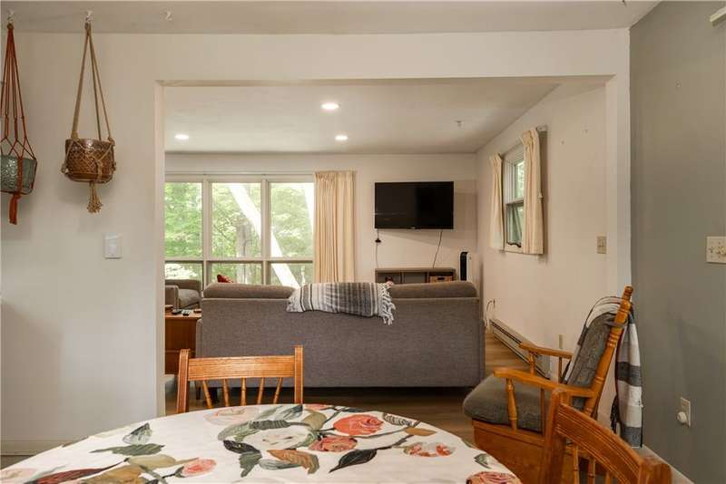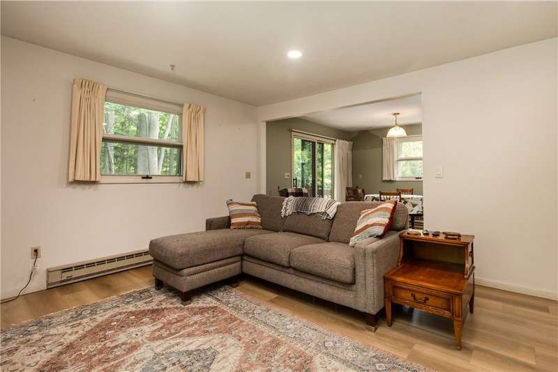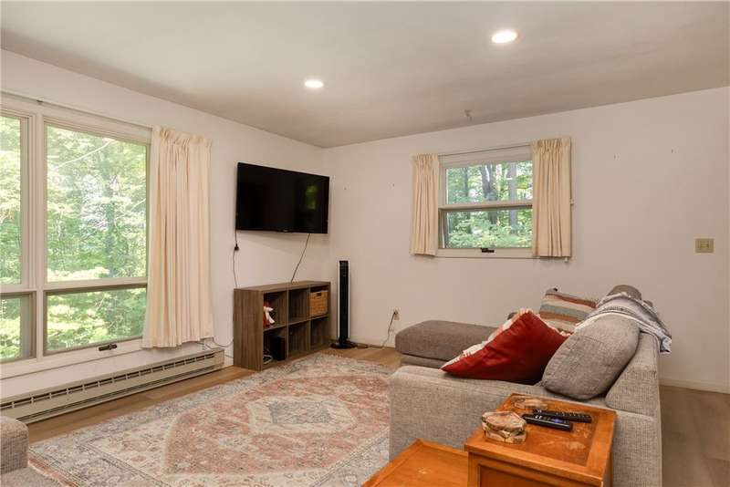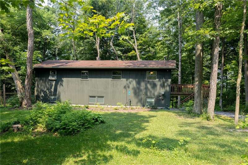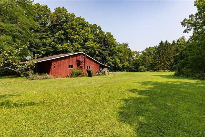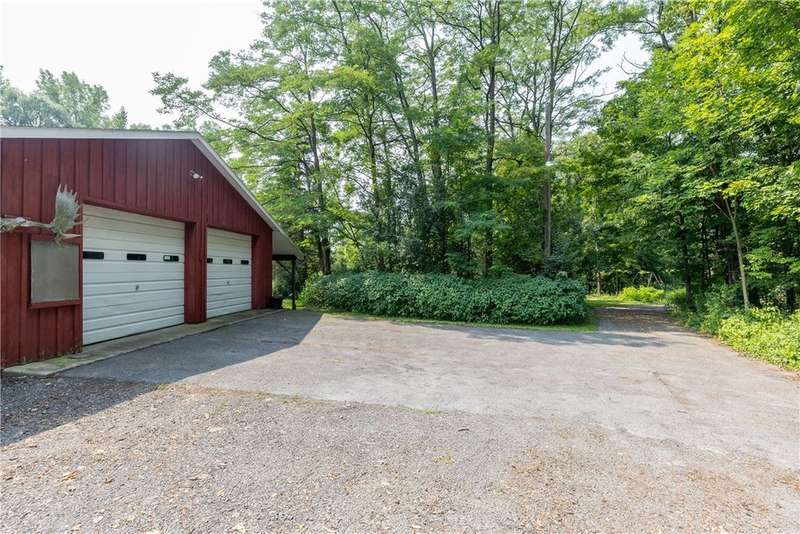 Nestled on over 6 private acres, this spacious 4-bedroom, two-story home offers a serene retreat just minutes from town. Set back from the road behind a picturesque stream and surrounded by mature woods, the property provides both privacy and natural beauty. The raised ranch layout features a fully finished basement with a cozy family room, workshop area, laundry room, a bedroom, and a full bathroom?perfect for guests or multi-generational living. Upstairs, you'll find another inviting family room, three additional bedrooms, a full bathroom, and a kitchen with a charming eat-in nook, new appliances, and direct access to the recently updated back deck. Enjoy peace of mind with numerous upgrades, including all-new flooring, lighting fixtures, and ceiling fans throughout. The exterior has been freshly repainted, complemented by new landscaping and a partially fenced-in yard?*swing set included! A large two-bay detached garage with side awnings offers plenty of extra storage, along with a separate barn-style building equipped with a chicken coop (or space for goats!). Ideally located just 10 minutes to Cornell University and 7 minutes to Target?this property blends comfort, convenience, and country charm.