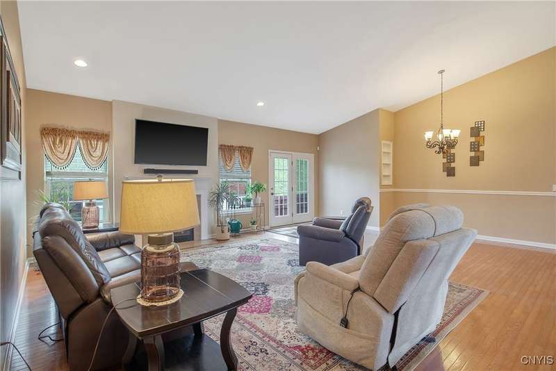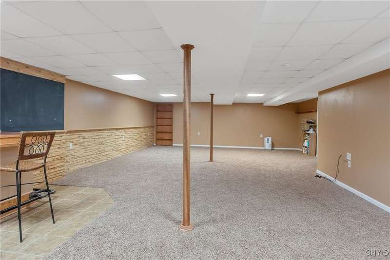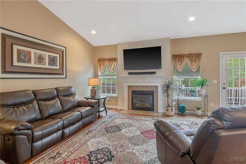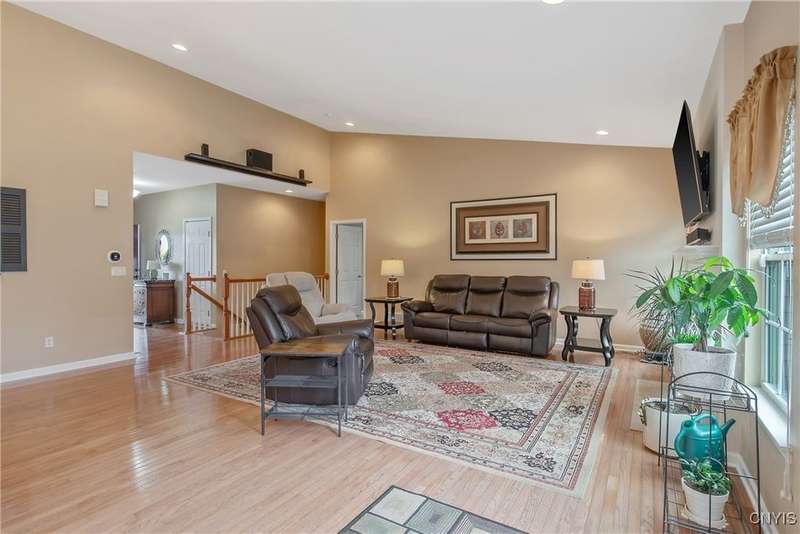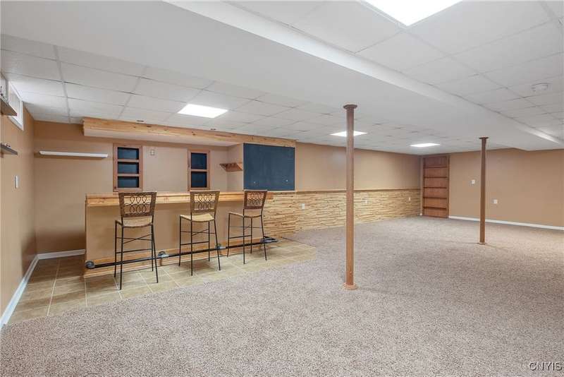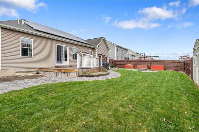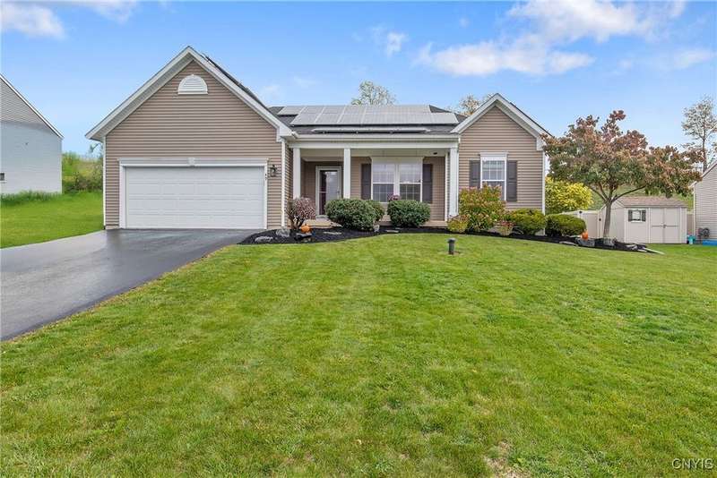 Showings begin on Friday, 10/17 for this beautiful 4-bedroom, 3-bath ranch home in Harbor Heights! Offering low utilities and tax incentives thanks to your own solar panels, plus the peace of mind of a whole-house natural gas generator, this home perfectly combines comfort, efficiency, and style in ideal, single level living with plenty to room to enjoy and entertain! You'll love the fabulous curb appeal and inviting front porch that lead to a welcoming foyer entry. The well-appointed kitchen features updated appliances, ample counter and cabinet space, and a convenient cut-out, overlooking the great room?ideal for entertaining or everyday living.The great room impresses with soaring cathedral ceilings, a gas fireplace, and open flow to the formal dining area. French door leads to a low maintenance deck and beautifully hardscaped patio with a fire pit, all within a fully fenced backyard?perfect for relaxing or hosting gatherings.The primary suite offers a private retreat with an en-suite bath complete with a jetted tub. Two additional bedrooms and a full bath complete the main floor.Downstairs, you'll find a fully finished basement featuring a bar area, a "hidden" bedroom with an egress window, another full bath, a workshop, and ample storage space. (Total square footage of 2,634 SF includes the finish space in the basement).Situated on an amazing lot in a prime location, this home is close to all conveniences and just down the street from the neighborhood park with a pavilion/BBQ area, basketball court and playground. All in the award-winning Baldwinsville School District.To top it off, this home comes with a one-year home warranty for added peace of mind.Energy-efficient, beautifully maintained, and move-in ready?this Harbor Heights gem truly has it all!