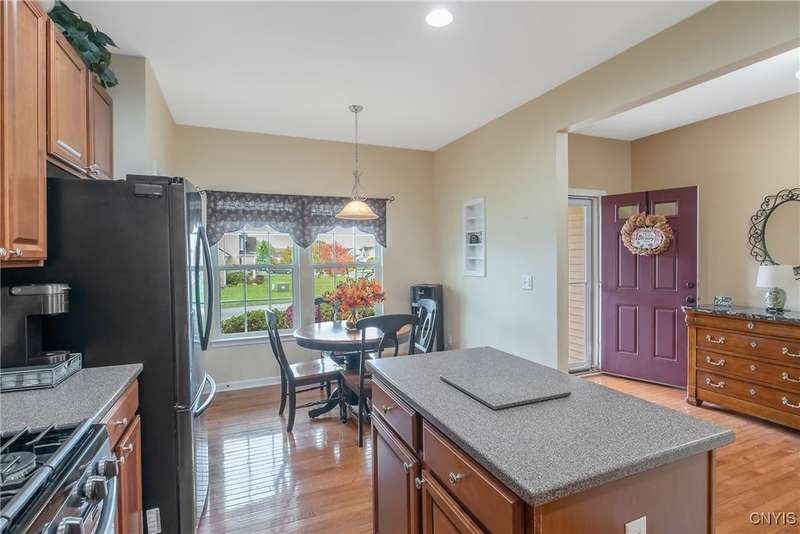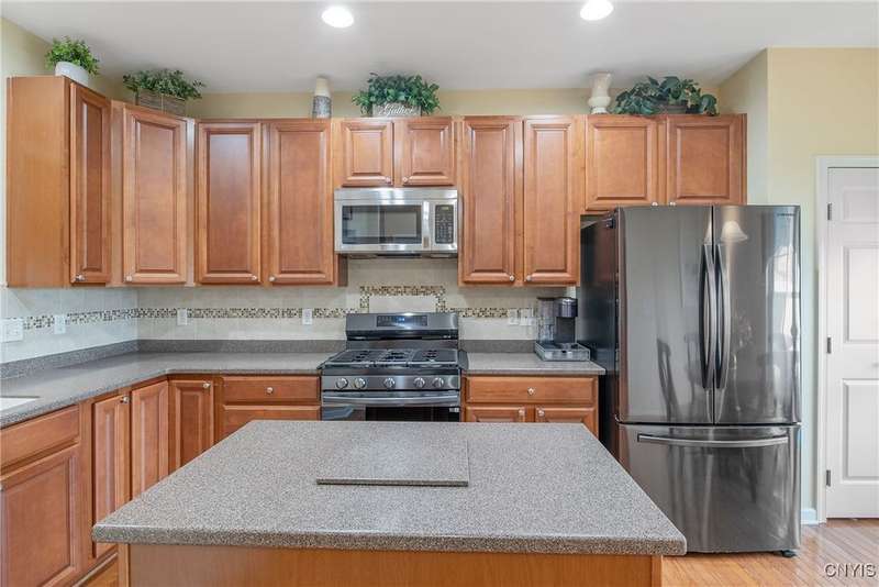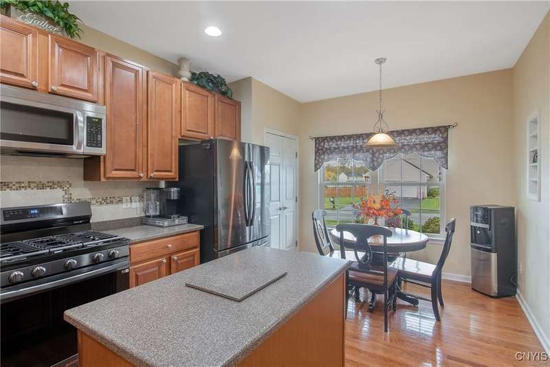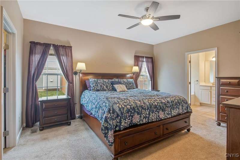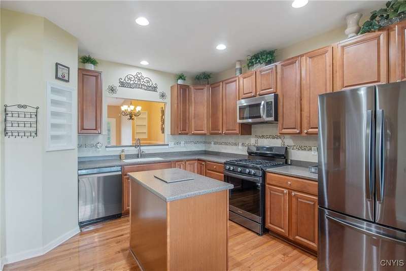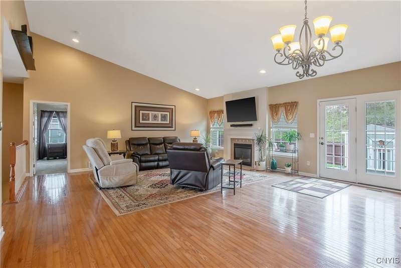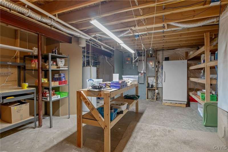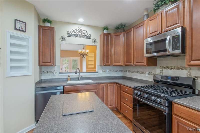 Showings begin on Friday, 10/17 for this beautiful 4-bedroom, 3-bath ranch home in Harbor Heights! Offering low utilities and tax incentives thanks to your own solar panels, plus the peace of mind of a whole-house natural gas generator, this home perfectly combines comfort, efficiency, and style in ideal, single level living with plenty to room to enjoy and entertain! You'll love the fabulous curb appeal and inviting front porch that lead to a welcoming foyer entry. The well-appointed kitchen features updated appliances, ample counter and cabinet space, and a convenient cut-out, overlooking the great room?ideal for entertaining or everyday living.The great room impresses with soaring cathedral ceilings, a gas fireplace, and open flow to the formal dining area. French door leads to a low maintenance deck and beautifully hardscaped patio with a fire pit, all within a fully fenced backyard?perfect for relaxing or hosting gatherings.The primary suite offers a private retreat with an en-suite bath complete with a jetted tub. Two additional bedrooms and a full bath complete the main floor.Downstairs, you'll find a fully finished basement featuring a bar area, a "hidden" bedroom with an egress window, another full bath, a workshop, and ample storage space. (Total square footage of 2,634 SF includes the finish space in the basement).Situated on an amazing lot in a prime location, this home is close to all conveniences and just down the street from the neighborhood park with a pavilion/BBQ area, basketball court and playground. All in the award-winning Baldwinsville School District.To top it off, this home comes with a one-year home warranty for added peace of mind.Energy-efficient, beautifully maintained, and move-in ready?this Harbor Heights gem truly has it all!