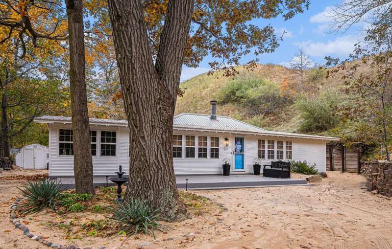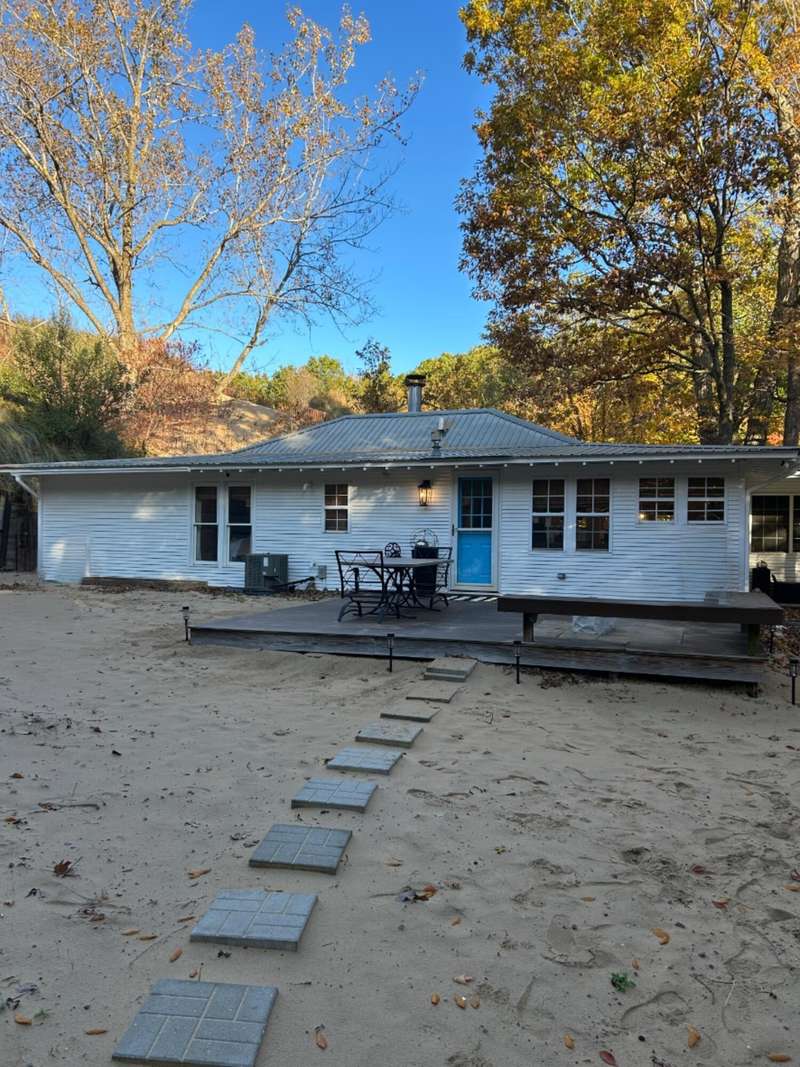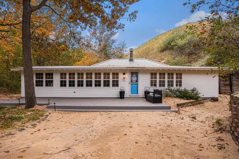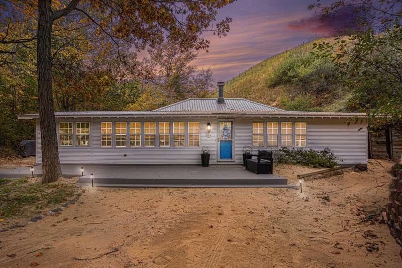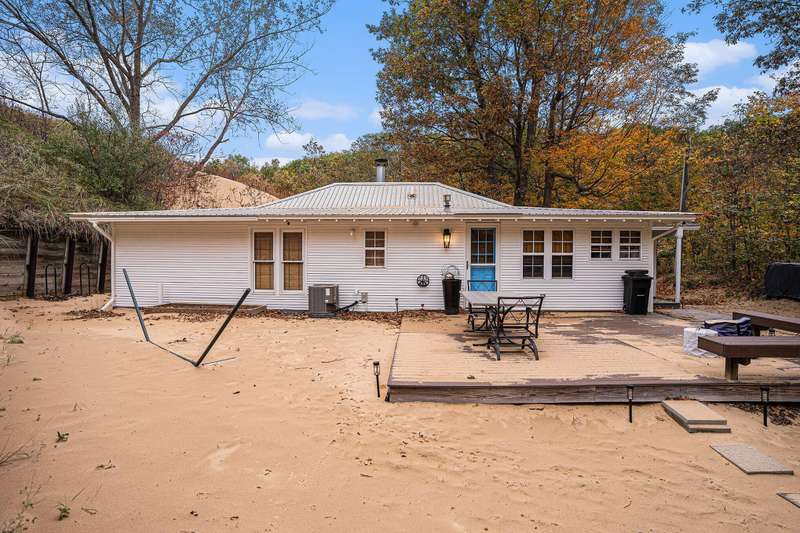 Tucked beside a majestic dune, this serene and private home blends the coziness of a cottage with an open floor plan designed for comfort and spacious living. Recent stylish updates add a touch of designer flair to an already charming retreat. The primary living space boasts great flow, beautiful hardwood floors, relaxing fireplace, lots of windows and oodles of charm. Tucked off the living area is a three-season room adding nice additional space. Enjoy convenient main-floor living with 3 bedrooms, 2 bathrooms and laundry room. Outdoor aeras and decks provide inviting spaces for gatherings. Cross over the sand dunes with your ATV or hike a short distance to find a vast sandy Lake Michigan beach. The beach is amazing! You will find this home spotless and extremely well maintained. Being sold turnkey, with a few exceptions. Bring a bottle of wine and start enjoying! South Haven Township allows Short-Term Rentals, making this an ideal investment opportunity. The location of this area is contiguous to Van Buren State Park, offering lush wooded trails, bike trails, towering dunes, pristine sandy beach, picnic areas, campgrounds and much more!