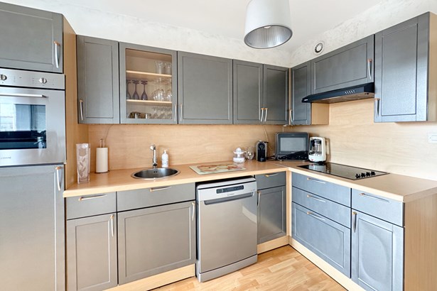 A private parking space and a cellar add to the comfort of this apartment located on a high floor with elevator access.