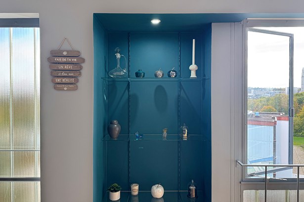 Located in the immediate vicinity of Parc Saint-Pierre, the Hortillonnages, and the city center, this apartment offers a living environment suspended between sky and greenery. From the living room's large bay windows, the city stretches as far as the eye can see: the cathedral, the Perret Tower, and the reflections of the park create a scenery that changes with the hours.