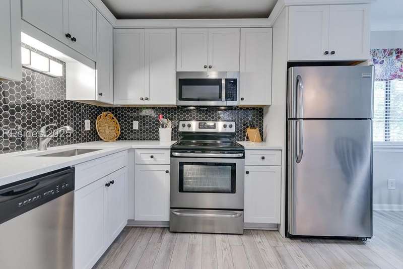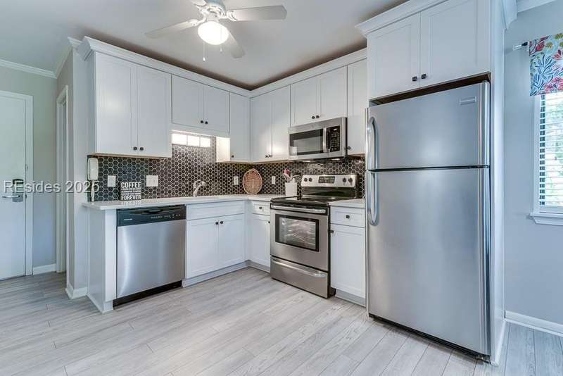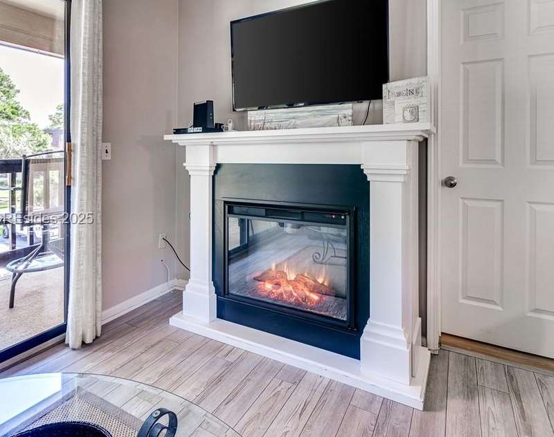 Heavily rented with over 20K gross rentals through July '25! Complete renovation including smooth ceilings and new water heater in August '24. Quartz counters, fresh cabinetry/soft close drawers, tile backsplash and stainless appliances. No carpet, hard surface flooring, seamless glass walk-in showers with designer tile surrounds and removable shower heads. Bath vanities, fixtures, and toilets replaced. Electric fireplace in Great Room creating even more charm. Lovely tree filtered view from covered balcony across to lagoon. Closest building to tennis pro shop, fitness, and laundry and steps to the beach! Turn key ready for you and your guests with strong rental history.