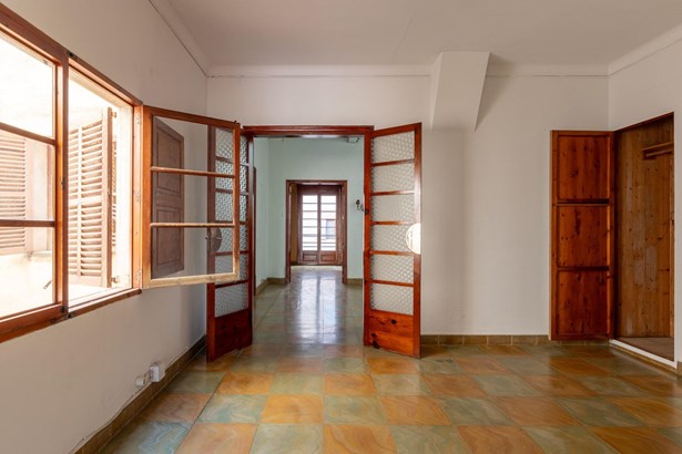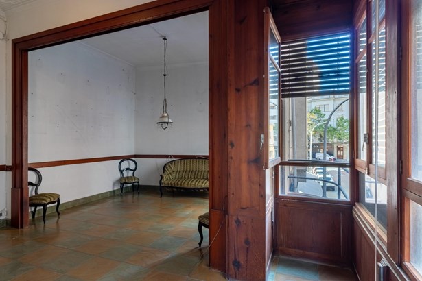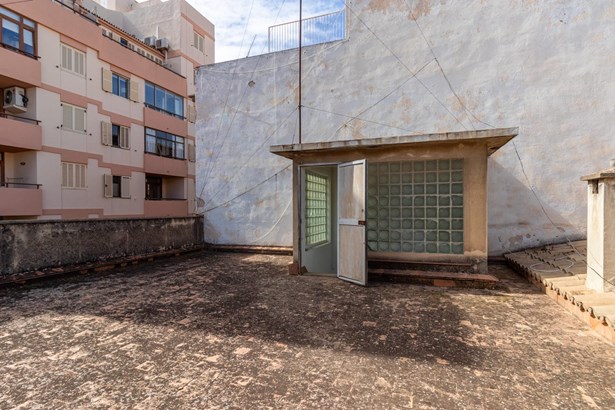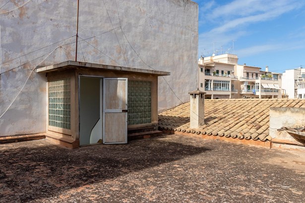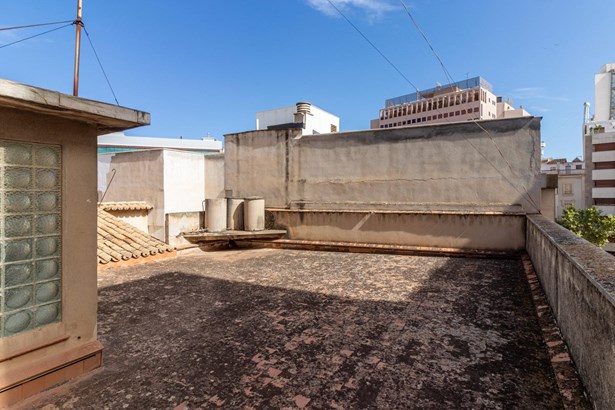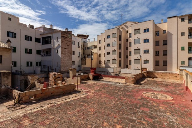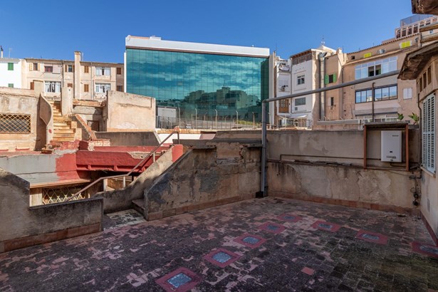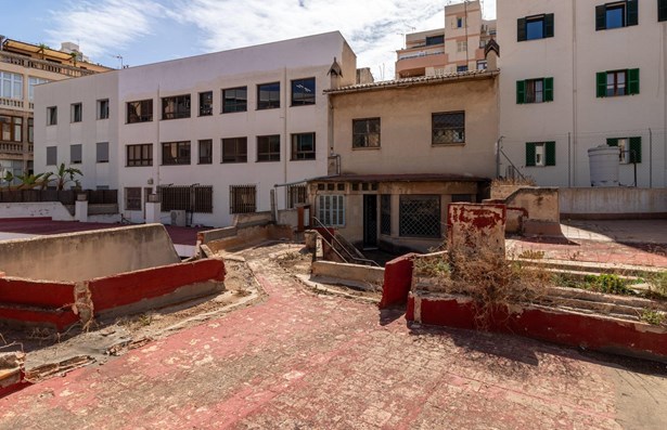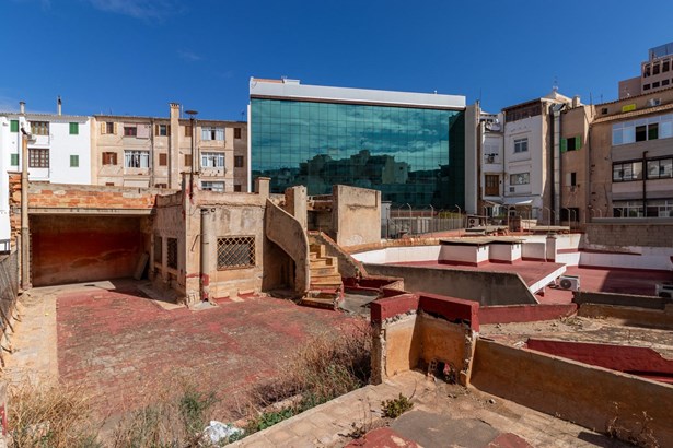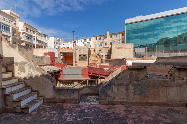 Exclusive Art Nouveau house for renovation in Plaza de los Patines~~Located in the heart of Palma, just five minutes from the Old Town, this exclusive Art Nouveau house from 1936 is ready for complete renovation. The property features 745 m² distributed over two floors and a rooftop solarium.~~On the ground floor, there is an open-plan space ideal for creating a garage with capacity for 3-4 vehicles, along with a multi-purpose area that can be transformed into a gym, home theater, or indoor garden. An elegant entrance hall on the first floor leads to a bright living-dining room and a kitchen that opens onto a spacious terrace, perfect for installing a pool. This floor also includes two double bedrooms with private balconies.~~The second floor features a cozy living room with a fireplace, four double bedrooms with built-in wardrobes, and a walk-in closet. At the top, the rooftop solarium offers urban views, making it an ideal spot for adding a pool or jacuzzi to create an exclusive outdoor space.~~The property preserves original Art Nouveau details that add a unique character, making it an exceptional opportunity to design a dream home in one of Palma’s most sought-after areas.