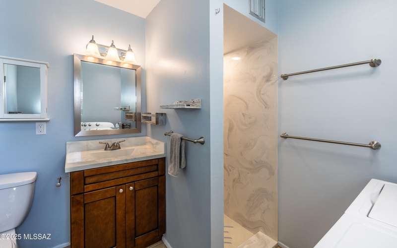 A True Desert Gem. Beautifully refreshed in 2024. This updated home blends style, comfort, and peace of mind. Recent improvements include: LED lighting throughout. No popcorn ceilings, an inviting walk-in-shower with safety rails. Quartz kitchen countertops, new refridgerator and garbage disposal, newer washer/dryer. Premium flooring,(no carpet). Fresh interior and exterior paint. Re-coated roof. All work performed by a licensed contractor. Additional features include a 5-year old HVAC system for reliable comfort, and a Siemens 220-volt electrical panel which was installed in 2024 for safety and improved functionality. Don't miss this beautiful home.