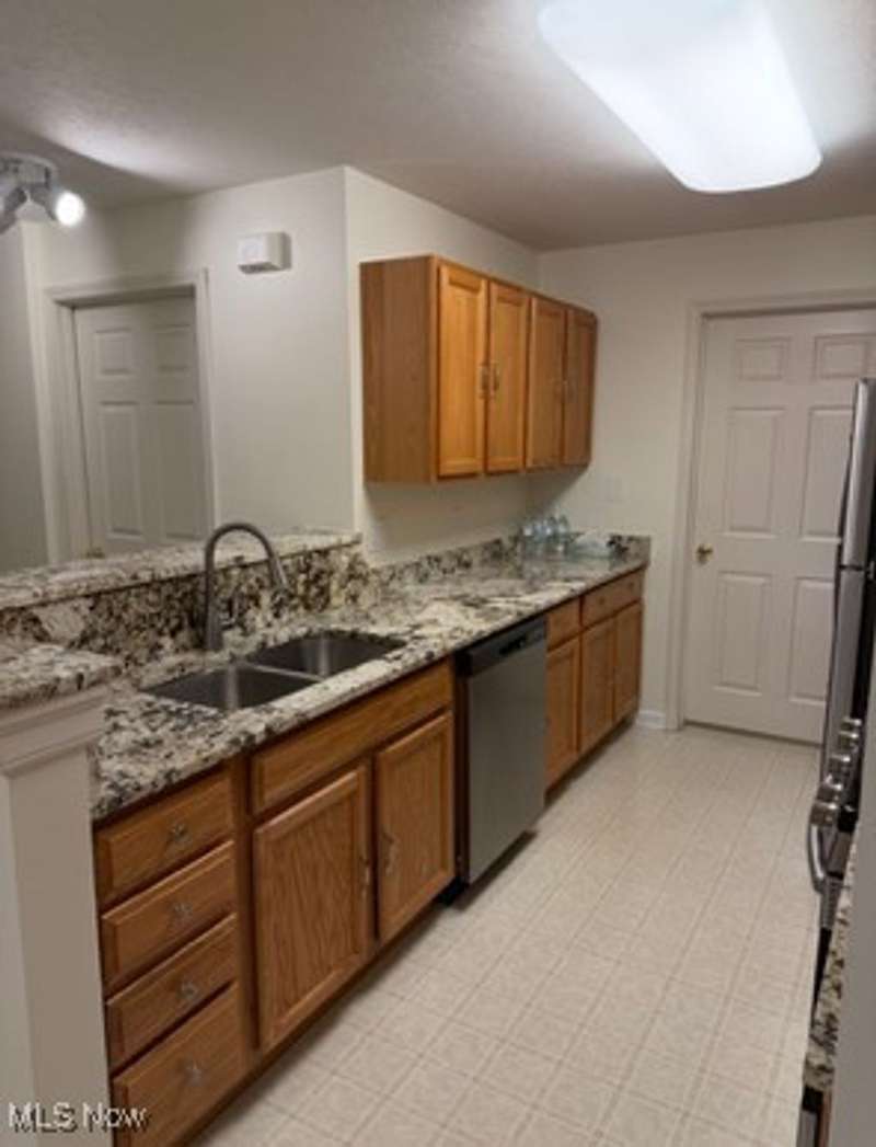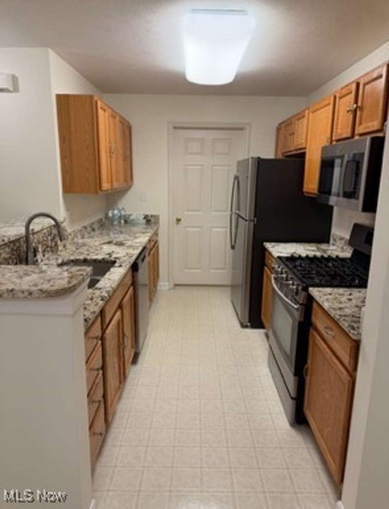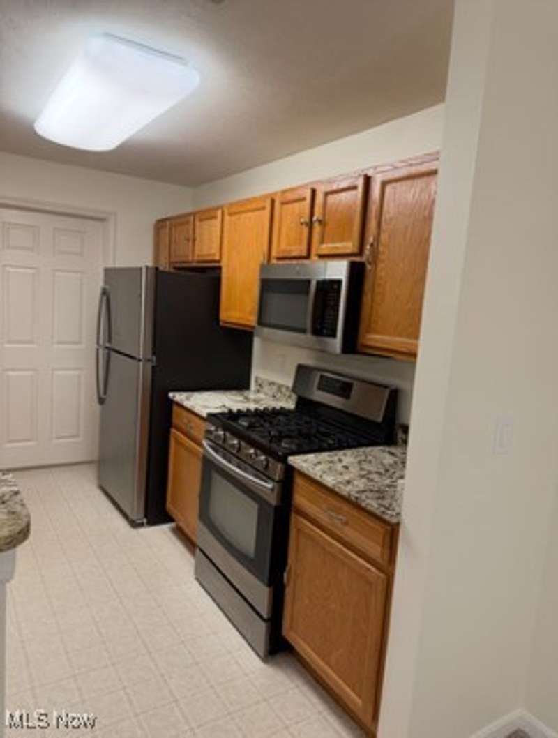 Totally updated 1,365 square root Lenox Ridge condominium in an extremely convenient location with easy access to Center Ridge Rd. This second-floor unit has all rooms on one floor with generous room sizes, a great open flow, two separate bedroom areas divided by the main living area, an entrance foyer with guest closet, a large private balcony with separate room for mechanicals and additional storage. Updated interior features include: freshly painted walls, many new window treatments all with large blinds, kitchen with granite countertops, stainless steel appliances (2023), new kitchen hardware, and all sinks with new drains and plumbing, all newer carpets throughout that have been professionally cleaned. A separate private single car garage, located in a detaching building with work bench, utility light and bike hangers.