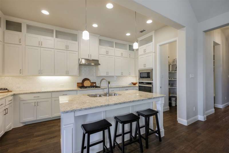Nestled in the Watters Branch at Craig Ranch community, this beautiful single-story home is the epitome of luxury living in Frisco ISD! As you step inside, you'll immediately be struck by the spaciousness of the open floor plan, beautiful wood floors, natural lighting throughout and tasteful touches that create a warm and welcoming ambiance. The spacious layout boasts three generously sized bedrooms, an office with double French doors and a primary suite located at the back of the home for added privacy that includes an ensuite bath with dual sinks, gorgeous soaking tub, separate shower and a large walk-in closet. The kitchen is a chef's dream - featuring granite counters, breakfast nook, coffee bar, SS appliances, gas cooktop, custom cabinetry, a large island that's perfect for preparing your favorite meals and direct access to dining and the large living area with a grand fireplace. Step outside to the covered patio overlooking the pool-sized private backyard, ideal for outdoor fun and relaxation! Full sprinklers, oversized 2.5 car garage, well maintained, energy efficient home with over 17K in custom shutters plus more! The home is located in the Craig Ranch master-planned community, offering access to fantastic amenities such as community pools, playground, and parks. Enjoy proximity to many golf courses and the nearby District 121, McKinneys Premier Dining, Events and Concert Space that offers a vibrant mix of restaurants, entertainment and more! Dont miss the opportunity to make this exceptional home yours!