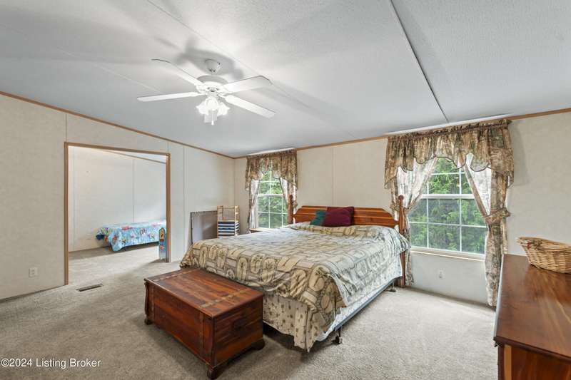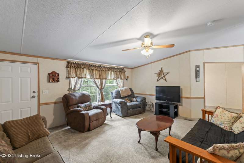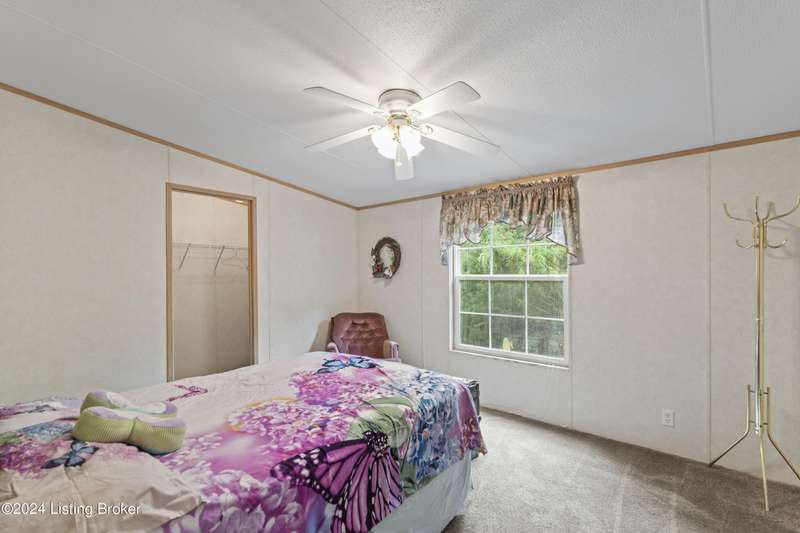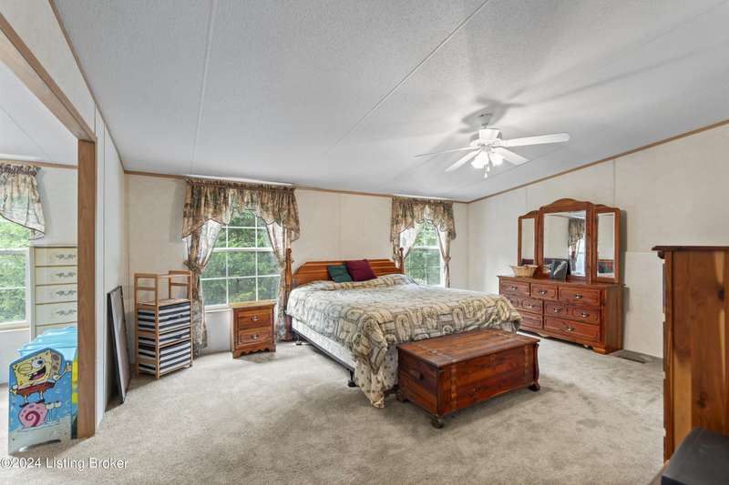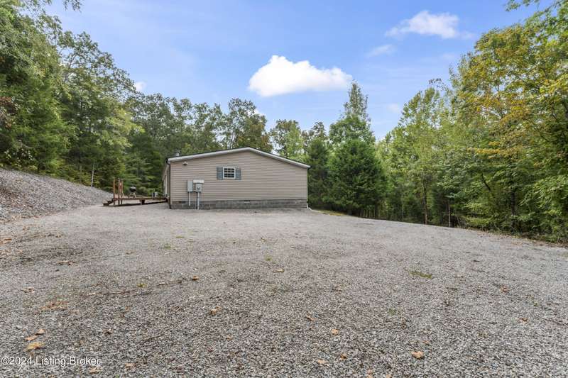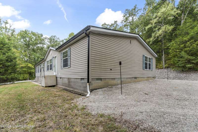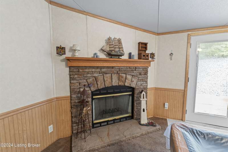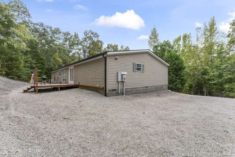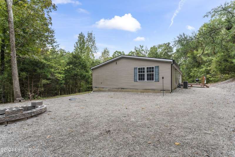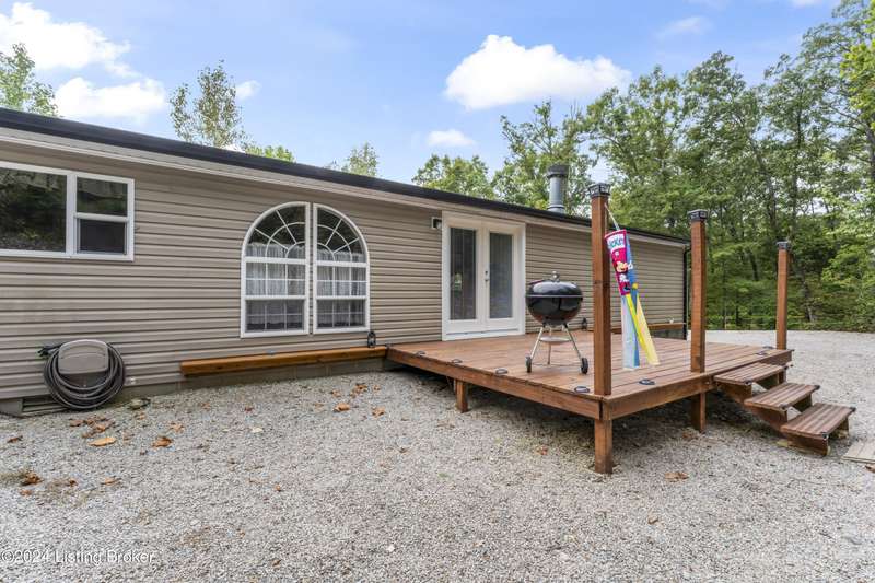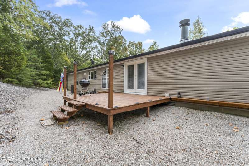 This spacious property spanning two lots, offers approximately 5.25 acres of space, which is mostly wooded, and features a 2,300 sq. ft. manufactured home with 3 bedrooms, 2 full baths, and a bonus room for added flexibility. The oversized primary bedroom easily fits king-size furniture and includes a bonus room ideal for a home office or cozy sitting area. The en-suite bathroom boasts a skylight over the large garden tub, double sinks, a step-in shower, and a spacious walk-in closet. Bedrooms 2 and 3 both have ceiling fans and large walk-in closets. The living room, with its cozy corner fireplace, opens to the kitchen and great room, and has newly installed French doors with built-in blinds (2023) and new tile entrance flooring. (August 2024). The large eat-in kitchen with range, microwave, dishwasher, and refrigerator, also has a large corner pantry, center island, desk area, and abundant cabinets and counter space, and is adjacent to the laundry room with a washer and dryer for added convenience. The large great room and separate dining room offer even more indoor space for all your entertainment needs. A brand-new roof, gutters, and downspouts, installed in August 2024, has a transferable warranty for the new buyers. The newly replaced and stained deck boards and posts (August/September 2024), new solar deck lights (September 2024), new solar outdoor motion sensor lights (September 2024), and the outdoor firepit with ample space for seating, all help to enhance the outdoor living space of this beautiful property. HSA home warranty provided for the new buyer