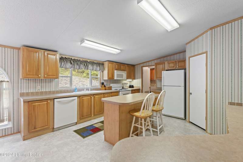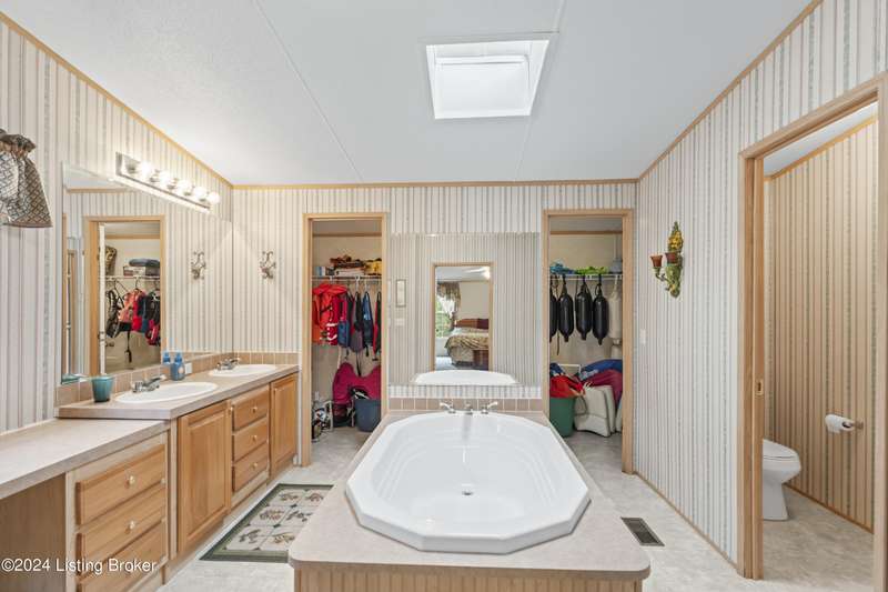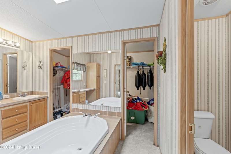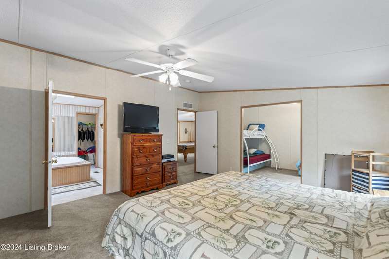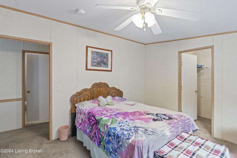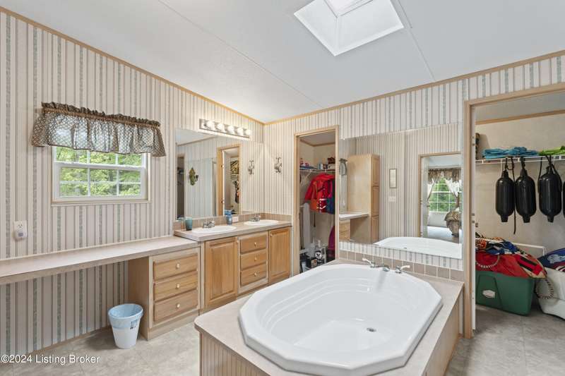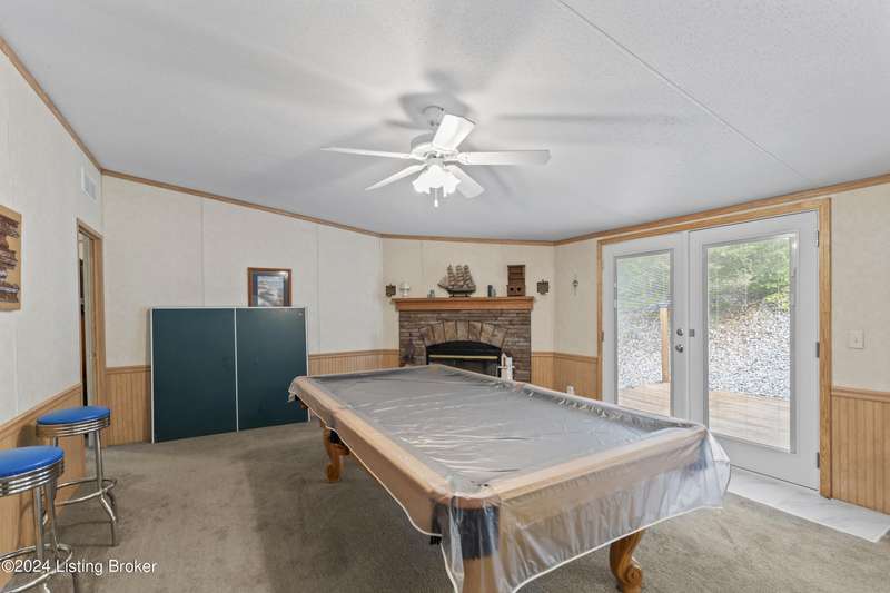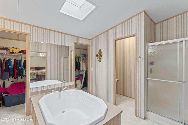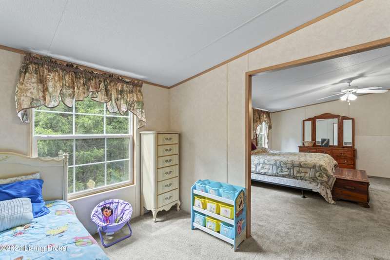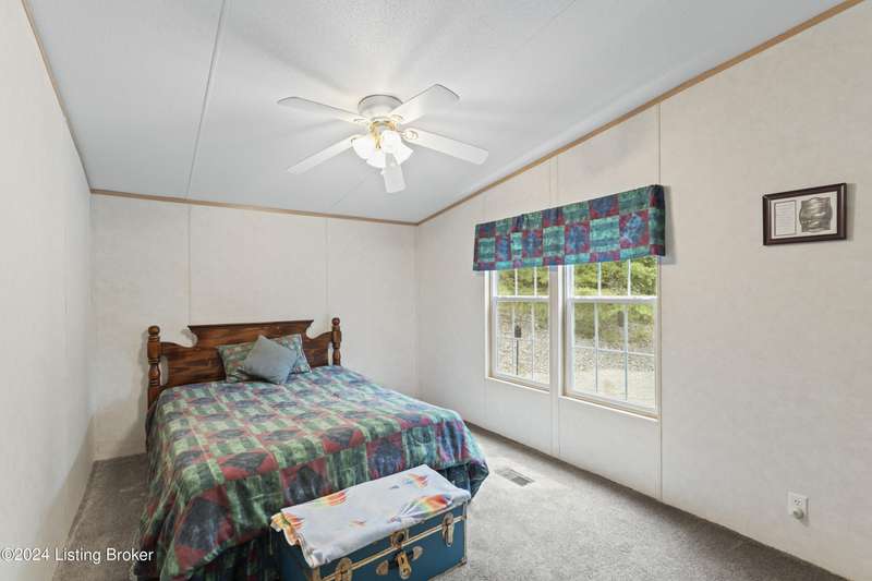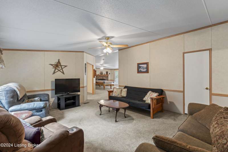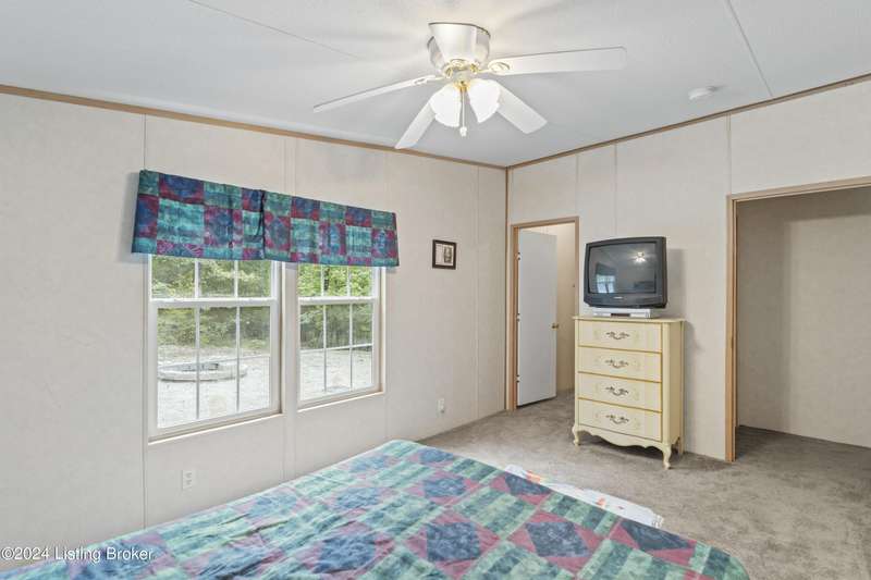This spacious property spanning two lots, offers approximately 5.25 acres of space, which is mostly wooded, and features a 2,300 sq. ft. manufactured home with 3 bedrooms, 2 full baths, and a bonus room for added flexibility. The oversized primary bedroom easily fits king-size furniture and includes a bonus room ideal for a home office or cozy sitting area. The en-suite bathroom boasts a skylight over the large garden tub, double sinks, a step-in shower, and a spacious walk-in closet. Bedrooms 2 and 3 both have ceiling fans and large walk-in closets. The living room, with its cozy corner fireplace, opens to the kitchen and great room, and has newly installed French doors with built-in blinds (2023) and new tile entrance flooring. (August 2024). The large eat-in kitchen with range, microwave, dishwasher, and refrigerator, also has a large corner pantry, center island, desk area, and abundant cabinets and counter space, and is adjacent to the laundry room with a washer and dryer for added convenience. The large great room and separate dining room offer even more indoor space for all your entertainment needs. A brand-new roof, gutters, and downspouts, installed in August 2024, has a transferable warranty for the new buyers. The newly replaced and stained deck boards and posts (August/September 2024), new solar deck lights (September 2024), new solar outdoor motion sensor lights (September 2024), and the outdoor firepit with ample space for seating, all help to enhance the outdoor living space of this beautiful property. HSA home warranty provided for the new buyer