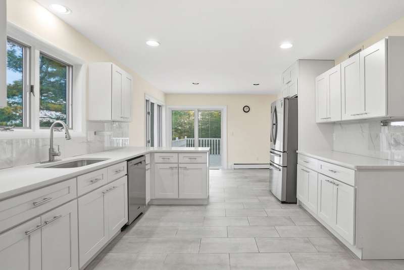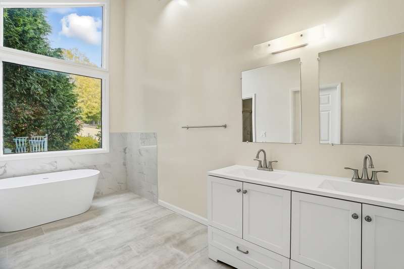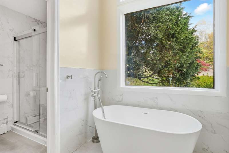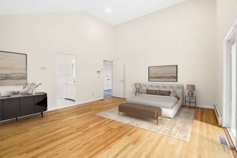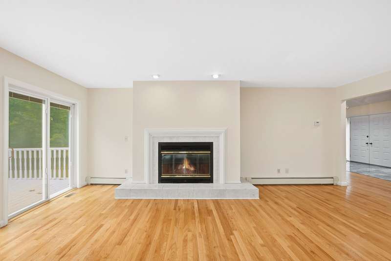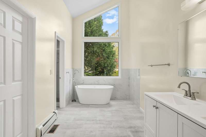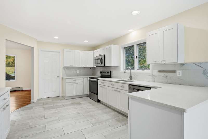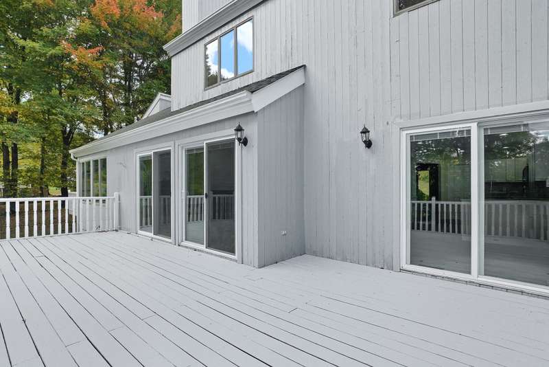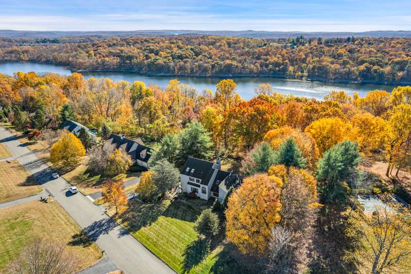 Stunning contemporary home with views! Welcome to this sun-drenched 4 bedroom, 4.5 bath contemporary-style home offering over 3200 square feet of beautifully updated living space with generously proportioned rooms. Set on landscaped property with seasonal reservoir views, this striking home features a two-story entry, soaring ceilings, skylights, and hardwood floors throughout. The fabulous updated kitchen and bathrooms showcase modern finishes, quartz countertops, stainless steel appliances, and thoughtful design. Every detail reflects quality and care, creating a welcoming ambiance. The main level primary suite is a luxurious retreat with a spa-like en-suite bath, while a second en-suite bedroom upstairs offers flexibility as an alternate primary. The heart of the home is a family room with fireplace and sliding glass doors that open to a large deck-perfect for entertaining, dining al fresco, or enjoying peaceful natural surroundings. Additional features include a semi-finished walkout basement with a full bath (approx. 1,000 sq. ft. with CO in place and not included in sq. ft.), ideal for a playroom, guest space, or home office. Brimming with natural light and contemporary charm, this beautiful home offers comfort, style, relaxed living, formal or casual entertaining all in a prime Somers location. Above ground oil tank 2025. Convenient to Metro North train, shops, restaurants and major thoroughfares. Rooms virtually staged.