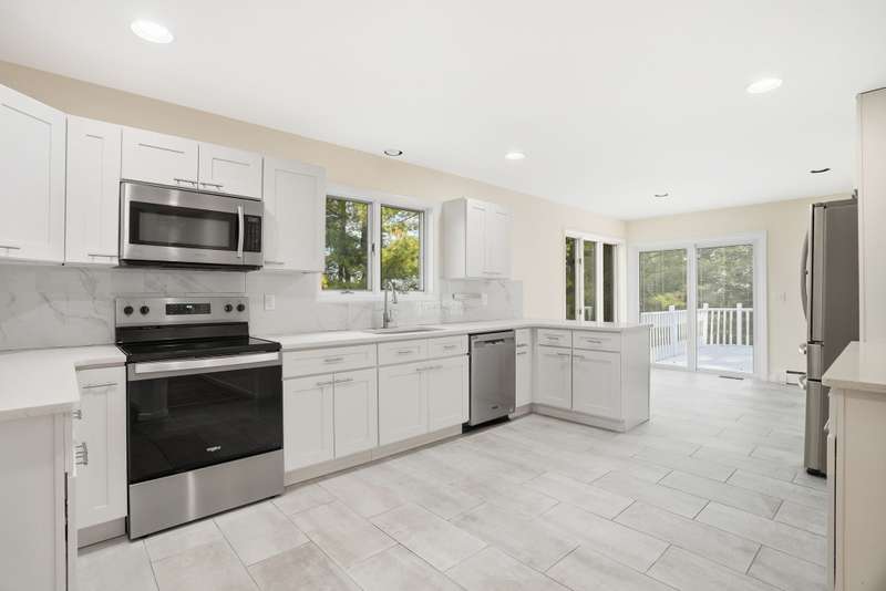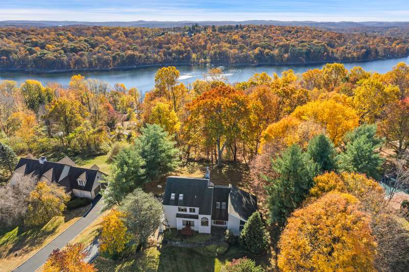 Stunning contemporary home with views! Welcome to this sun-drenched 4 bedroom, 4.5 bath contemporary-style home offering over 3200 square feet of beautifully updated living space with generously proportioned rooms. Set on landscaped property with seasonal reservoir views, this striking home features a two-story entry, soaring ceilings, skylights, and hardwood floors throughout. The fabulous updated kitchen and bathrooms showcase modern finishes and thoughtful design. The main level primary suite is a luxurious retreat with a spa-like en-suite bath, while a second en-suite bedroom upstairs offers flexibility as an alternate primary. The heart of the home is a family room with fireplace and sliding glass doors that open to a large deck-perfect for entertaining, dining al fresco, or enjoying peaceful natural surroundings. Additional features include a semi-finished walkout basement with a full bath (approx. 1,000 sq. ft. with CO in place and not included in sq. ft.), ideal for a playroom, guest space, or home office. Brimming with natural light and contemporary charm, this beautiful home offers comfort, style, relaxed living, formal or casual entertaining all in a prime Somers location. Above ground oil tank 2025. Convenient to shops, restaurants and major thoroughfares. Rooms virtually staged.