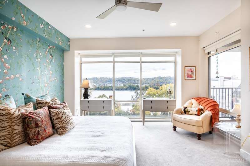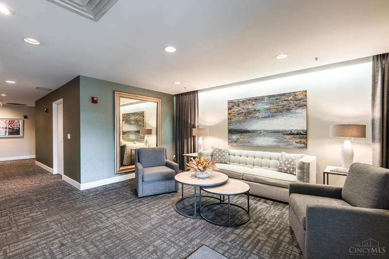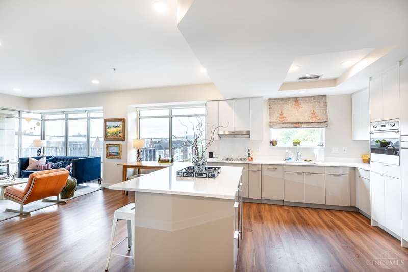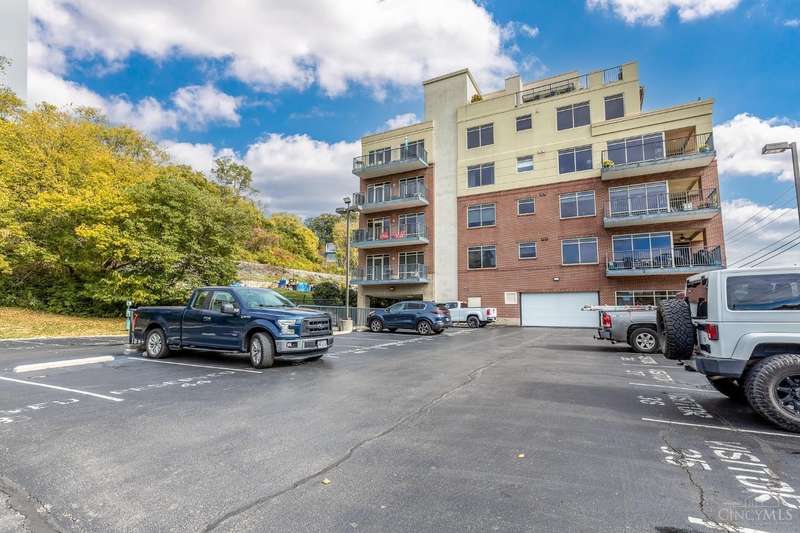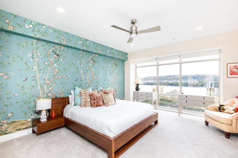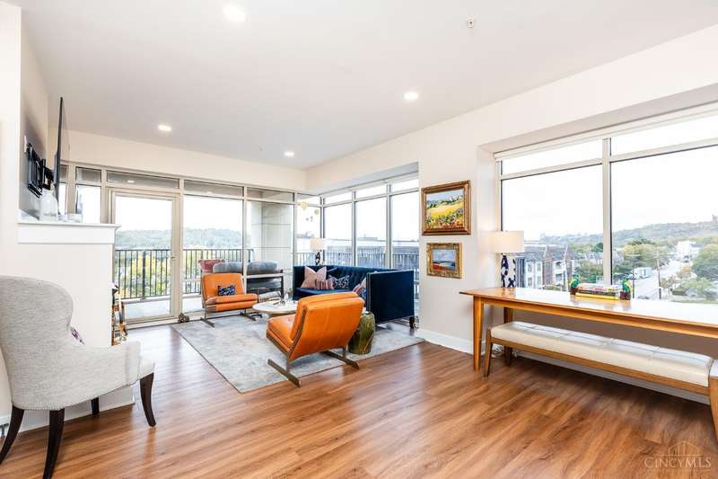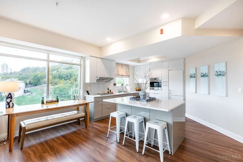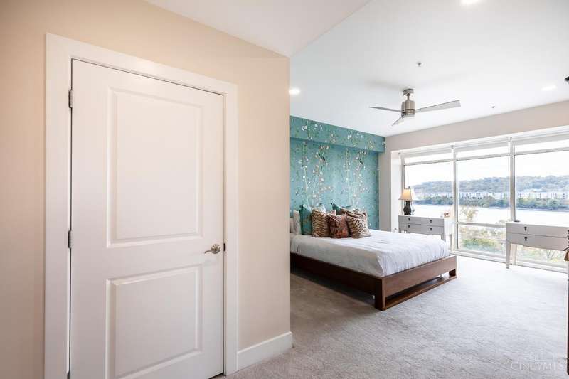 Enjoy stunning views of the Ohio River & KY hillside from nearly every room of this bight, open & beautifully appointed contemporary condo in the sought-after Riverwalk building in Cincinnati's vibrant East End*Practical open-concept layout w/9' ceilings & floor-to-ceiling windows*Sleek modern eat-in KIT w/custom cabinetry, quartz countertops & premium Smeg appliances*Inviting living room w/vent-free gas log fireplace & access to the covered wrap-around balcony overlooking the river + hillsides, perfect for relaxing or dining al fresco*Primary suite w/wall of windows, designer wall mural & luxurious spa-like ensuite BA w/frameless glass shower & illuminated double vanity*2nd bedroom + renovated full BA offer flexibility for guests or home office*Dedicated laundry room*One deeded garage parking space + one deeded surface lot space*Secure building w/elevator & convenient access to the Ohio River Trail*Prime location minutes from Downtown, Columbia-Tusculum, Mt. Adams & more.