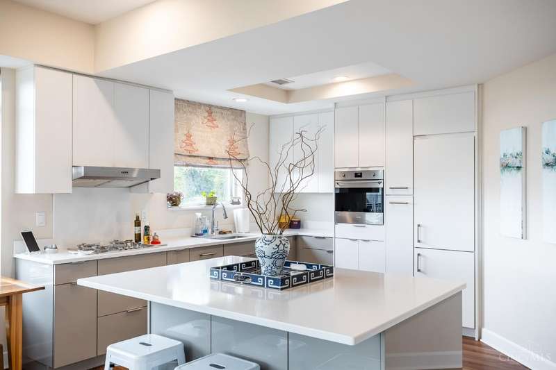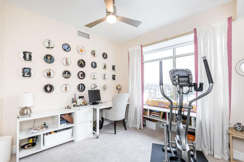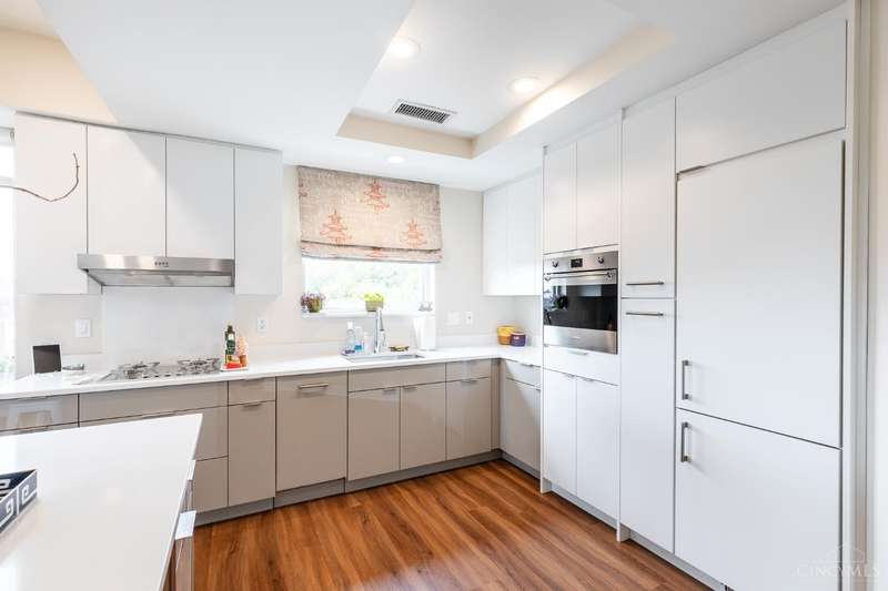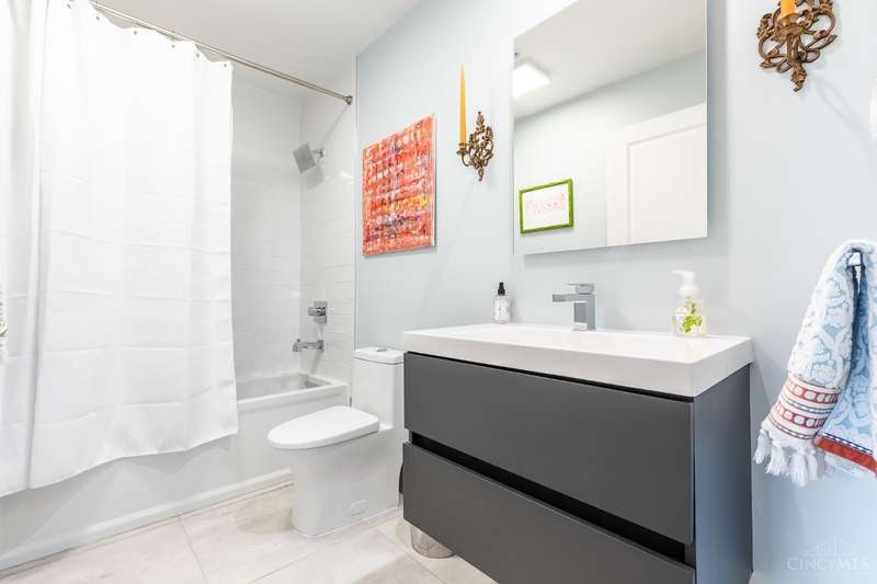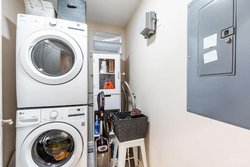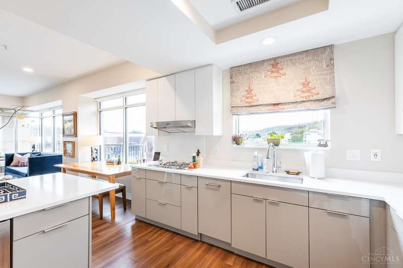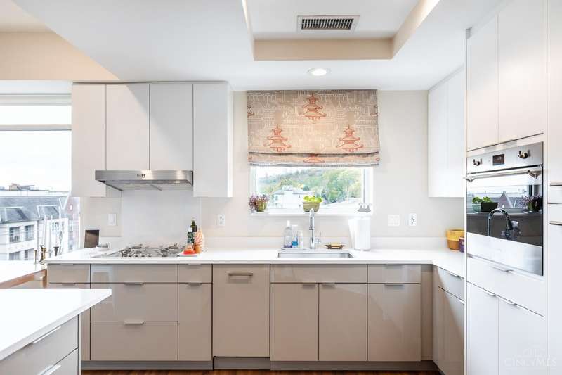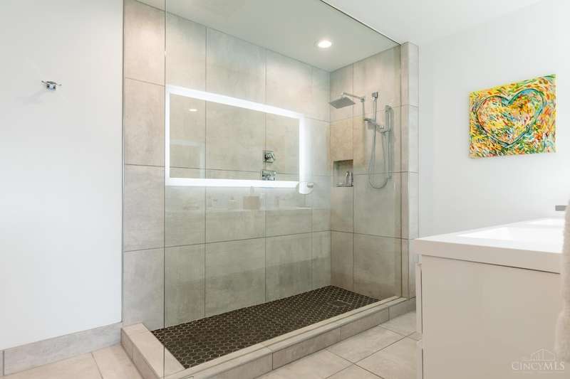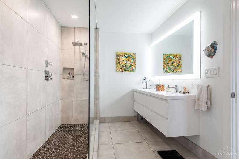 Enjoy stunning views of the Ohio River & KY hillside from nearly every room of this bight, open & beautifully appointed contemporary condo in the sought-after Riverwalk building in Cincinnati's vibrant East End*Practical open-concept layout w/9' ceilings & floor-to-ceiling windows*Sleek modern eat-in KIT w/custom cabinetry, quartz countertops & premium Smeg appliances*Inviting living room w/vent-free gas log fireplace & access to the covered wrap-around balcony overlooking the river + hillsides, perfect for relaxing or dining al fresco*Primary suite w/wall of windows, designer wall mural & luxurious spa-like ensuite BA w/frameless glass shower & illuminated double vanity*2nd bedroom + renovated full BA offer flexibility for guests or home office*Dedicated laundry room*One deeded garage parking space + one deeded surface lot space*Secure building w/elevator & convenient access to the Ohio River Trail*Prime location minutes from Downtown, Columbia-Tusculum, Mt. Adams & more.