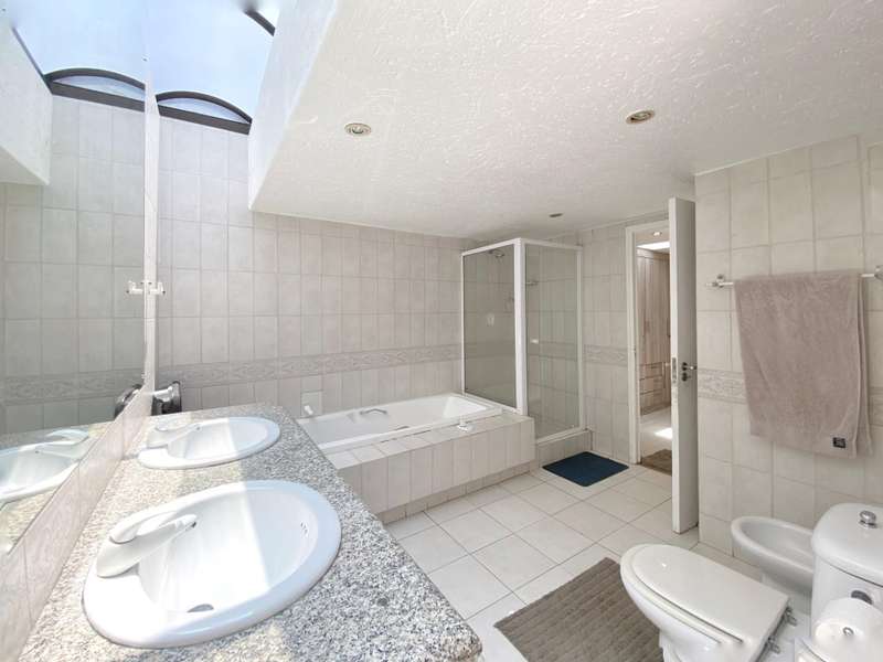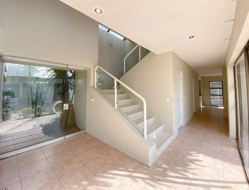 This immaculate and well-designed cluster is set within a sought-after 24 hour security-controlled complex centrally located with easy access to Bedford Centre. Homes in this cluster complex do not come onto the market very often and are well sought-after! Featuring a semi-open floor layout with emphasis on indoor/outdoor entertainment, this home offers more than meets the eye. One is welcomed through the entrance hall leading onto one of 2 lounges with sliding doors flowing onto the tranquil surrounds and a formal dining room. The upmarket kitchen features space for appliances, granite tops and a scullery area with access to the outside service area. Upstairs lies another reception area which can be used as an open plan study or pyjama lounge, and flows onto the 3 brightly-lit bedrooms which are serviced by 2 well-designed bathrooms. There are balconies offering treetop views and to enjoy those African sunsets from. With double automated garaging plus additional visitors parking, staff accommodation and 24 hour access-controlled entry into this complex, this home is an excellent buy for the discerning family.