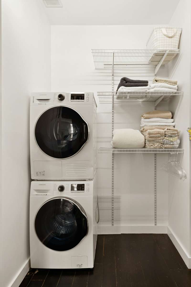 Additional amenities include a virtual doorman to receive guests and packages, central heat and air in 2 zones, Bosch washer/dryer, and private basement storage.
