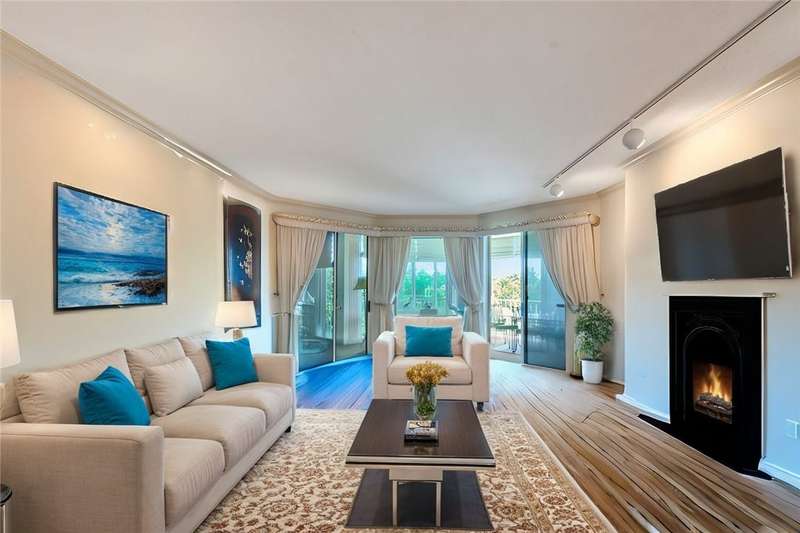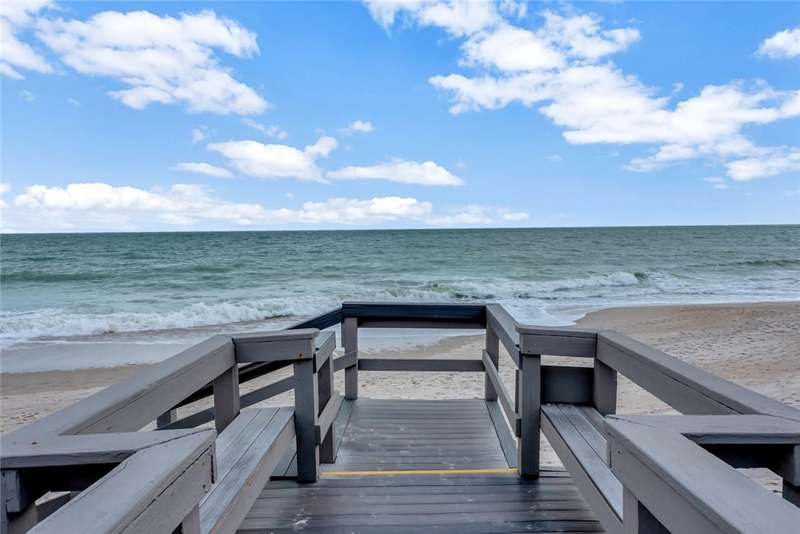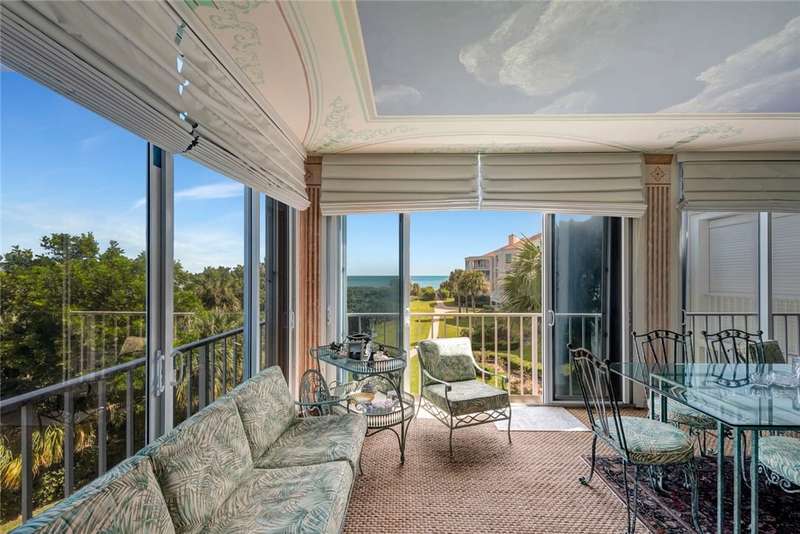 Embrace ocean views & coastal breezes from this beautifully designed split-plan condo. The spacious living room w/faux fireplace & convenient wet bar is perfect for entertaining. Primary w/his & her baths. Enjoy ocean views from nearly every room. Enclosed wrap-around glass porch adds an extra 320 Sq. Ft. Open the sliders to let in the A/C. Additional perks include 2 under-building parking spots, storage closet & recent roof assessment to be paid by the seller. Community amenities incl. staffed gate, heated pool, tennis & pickleball courts & private beach access. Sizes approx./subj. to error.