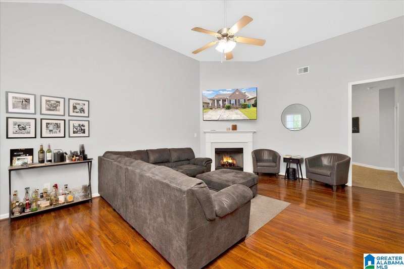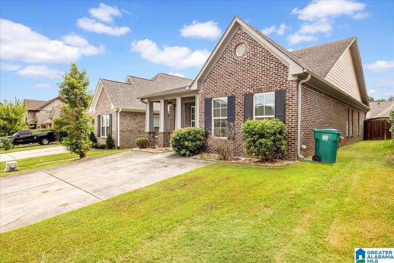 Welcome to 3575 Grand Central Avenue in the charming Black Creek Station neighborhood of Fultondale, Alabama! This cozy 3-bed, 2-bath home, built in 2009, offers about 1,600 sq. ft. of well-designed living space—perfect for first-time buyers or downsizers. The covered front patio leads into a den with soaring ceilings and a warm fireplace. To the right, two bedrooms share a full bath, while the back left holds the kitchen, dining area, and laundry room. The private master suite on the back right features a spacious bath and dual closets. Outside, enjoy a large covered back patio overlooking the flat, fenced yard, plus a built-in storage room for added convenience. Minutes from downtown Birmingham, UAB, local hospitals, and Protective Stadium, you’ll have city amenities with neighborhood charm.