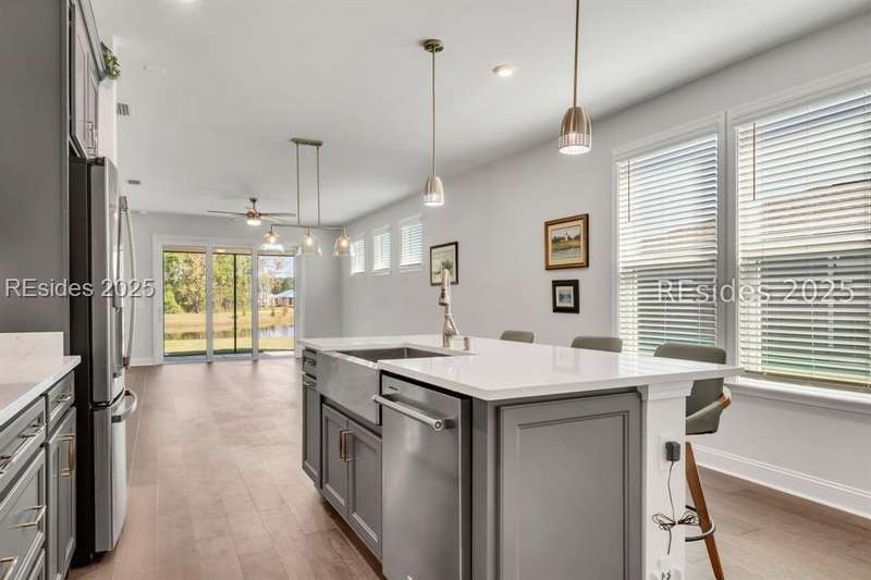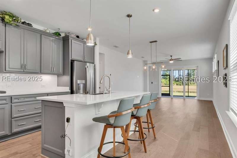 Skip the wait for new construction with this nearly new Hallmark Loft model (less than one year old and under warranty) located in Sun City Hilton Head's newest West side neighborhood. Designed with the latest finishes and coastal-inspired colors, this home enjoys premium water-to-woods view. Start your mornings on the screened porch with coffee in hand, mesmerized by South Carolinas coastal birds. Open the stackable sliding doors to blend indoor and outdoor living, and enjoy the airy open floor plan. The gourmet kitchen is a chef's delight, featuring a gas cooktop, walk-in pantry, roll-out drawers and quartz countertops. The thoughtful split-bedroom layout places the primary suite in one corner and a guest bedroom in the opposite, ensuring privacy for all. A versatile flex room offers space for an office, den or additional bedroom. Upstairs, you'll find a spacious bonus area ideal for your long-awaited retirement hobbies or a TV room, along with a storage room and a private guest suite. Built for comfort and efficiency, the home includes natural gas heating, cooking, and a tankless water heater. Just blocks away, the brand-new Amenity Center is nearly complete, offering indoor and outdoor pickleball and tennis, a running track, and a resort-style pool with private cabanas, an amphitheater, and food and beverage service. End the day where you began...relaxing in your outdoor space, savoring the lifestyle of this vibrant active-adult community.