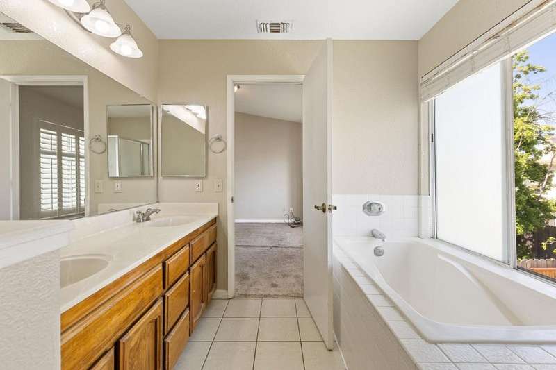 Charming Home in the Vintage Park Community - Elk Grove School District. Welcome to this beautifully maintained NEWLY PAINTED INTERIOR, 4-bedroom, 2.5-bathroom home nestled in the desirable Vintage Park community, located within the highly sought-after Elk Grove School District. With 1,588 square feet of comfortable living space, this home is perfect for families seeking both functionality and relaxation. Enjoy the warm summer days in your private backyard featuring a built-in swimming pool, ideal for cooling off and entertaining. The inviting family room offers a cozy fireplace and an adjacent dining area with direct access to the spacious backyard, creating the perfect space for gatherings and everyday living. The kitchen includes a charming breakfast nook, ideal for enjoying your morning coffee. Upstairs, you'll find all four generously sized bedrooms. The primary suite features a spacious layout, an en-suite bathroom with dual sinks, and plenty of natural light. The additional bedrooms offer comfort and flexibility for family, guests, or a home office. The backyard is a true retreat with a sparkling pool, a designated play area for children, and a separate space perfect for barbecuing and relaxing. A mature orange tree adds charm and the benefit of fresh fruit right from your own yard.
