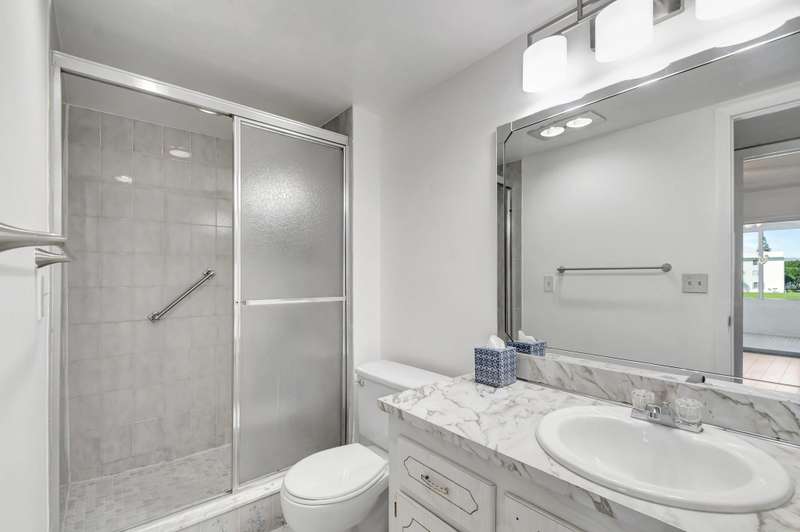 Elevator right at your door. Easy parking too! From the time you enter 267 Wellington J, the gorgeous water views amaze you. Enjoy coffee every morning in the enclosed patio. The long lake views and views of the clubhouse are some of the nicest views in this 55+ community. The cabinets and countertops have been updated and the stainless steel appliances are practically new. The majority of the flooring has also been updated. The plantation shutters allow light in the dining area and living room, but also privacy when you need it. There is a satellite pool next to this building. But, the majority of the amenities are just across the lake. Pools, tennis, pickleball, community room, etc. Motivated Seller. Schedule an appointment with your favorite Realtor!