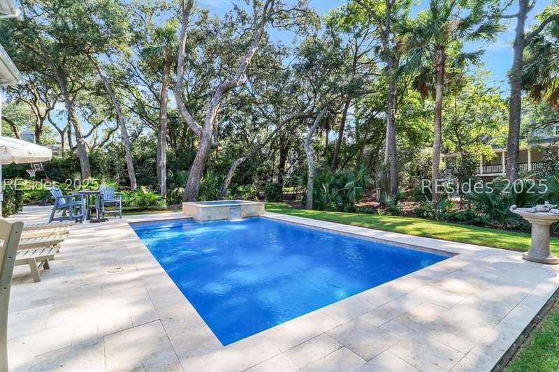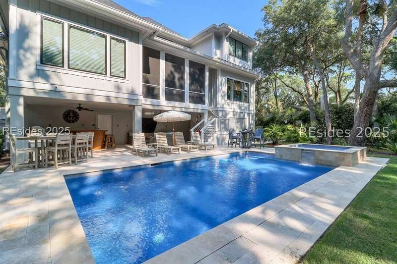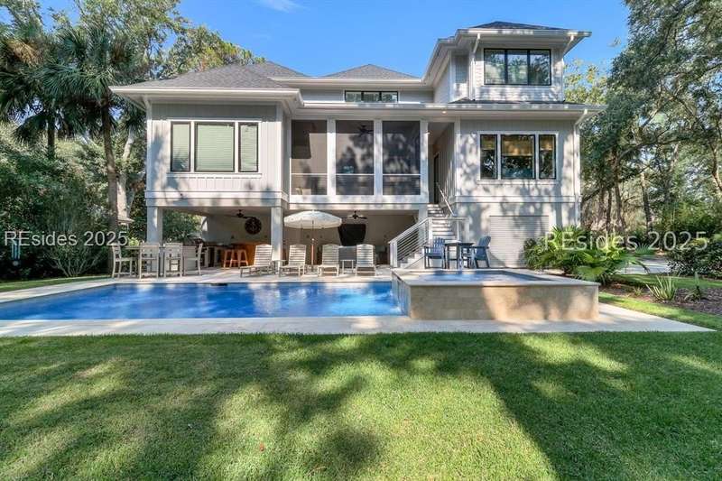 Luxury Coastal Living in Palmetto Dunes. This exceptional newly built residence (2025) truly has it all-just three rows from the beach in the coveted Palmetto Dunes community. Thoughtfully designed and masterfully crafted, this home offers 5 spacious bedrooms, 6.5 baths, a 4-car garage, and a private pool and spa surrounded by an inviting outdoor living area and kitchen-perfect for entertaining or relaxing in style. Inside, the chef's kitchen impresses with two expansive islands, Thermador appliances, dual sinks, and designer finishes that blend sophistication with functionality. From the front porch, enjoy a peek of the ocean and the gentle coastal breeze that defines island living. Each bedroom features its own private ensuite bath, including two luxurious primary suites offering comfort and privacy for both owners and guests. A dedicated office, ample storage space on the lower level, and a three-stop elevator add ease and convenience throughout the home. Additional highlights include a tankless water heater, premium craftsmanship, and pristine condition-never used as a rental. This stunning home is ideal as a primary residence, second home, or luxury rental investment, offering the ultimate blend of elegance, location, and lifestyle.