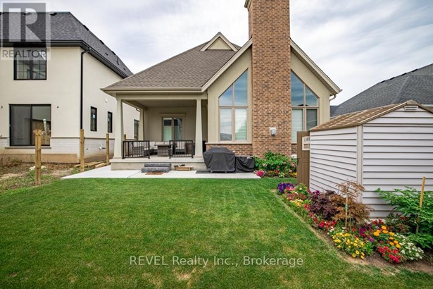 Set on a quiet, refined streetscape in the heart of St. Davids, 75 Millpond Road is a custom-built bungalow by DRT Homes offering over 2,700 sq. ft. of finished living space. The grand foyer with wainscoting opens to a soaring great room with 20-ft ceilings and a dramatic tiled fireplace. The main floor features a spacious primary suite with a walk-in closet and an ensuite, a second bedroom (currently styled as a home office) with its own 3-piece bath, and a bright, neutral kitchen with high-end finishes. Outdoors, a covered patio extends the living space into landscaped surroundings. The lower level is designed for gathering, with an expansive rec room, built-in bar/kitchenette with stone counters, an additional bedrooms and full bath and a spacious home gym. Millpond Road is known for its well-appointed high-end homes and peaceful setting - all within walking distance of Ravine Vineyard, local cafés, and dining in the village of St. Davids. Just minutes away are Old Town Niagara-on-the-Lake, Golf Courses, Shaw Festival Theatre, Queen Street shops and restaurants, The Outlet Collections of Niagara & White Oaks, and of course, the areas many renowned wineries. Particularly convenient about this location is the quick highway access for easy commutes, and close proximity to all that Niagara Falls and St. Catharines have to offer as well. An excellent opportunity to own a thoughtfully designed home in one of Niagara's most desirable communities!