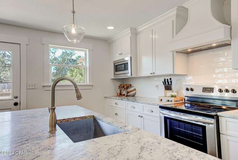This historic home blends classic charm and contemporary comfort. The hardwood floors give warmth throughout, and the updates give a new spin on the homes character. Buyers can have peace of mind knowing the electrical, plumbing, A/C, and windows were recently renovated, and the block construction and metal roof add to the quality of the structure. The kitchen is beautiful with quality finishes and a large island ideal for food prep and casual meals. The open dining area provides a perfect space for gatherings. This is a split floor plan, and the primary suite includes an en suite with a double vanity and tile shower. The additional bedrooms are comfortable in size and both bathrooms have been updated. Sizeable lots are hard to find these days, but this large, fenced yard is perfect for privacy and outdoor activities. The Cove is a historic neighborhood that is valued by locals and appreciated by those lucky enough to experience the stories it has to share. This property has an effective year of 2021 and is a must-see for those who appreciate both the past and present!