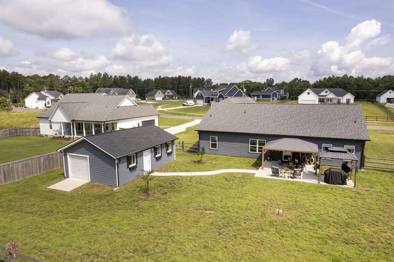 Don't miss this beautiful 2022 4BR, 2.5BA home with luxury finishes. The open concept living includes granite counters, farmhouse sink, soft-close cabinets, huge walk-in pantry and coffee station. The primary en-suite is the perfect place to end the day complete with dual sinks & closets and rain head shower. The split bedroom plan offers flexibility plus the large bonus room can act as a bedroom or office. The garage is oversized and includes a large closet plus a sink. A permitted 20x30 (10x20 storage with a garage door) studio with water, heat & AC was added;perfect for hobbies or retreat. Make entertaining a breeze with the extended pergola patios. Raised garden beds complete this property. Built as their forever home, the sellers are now embarking on a new chapter. See disclosures for upgrades! 1 hour notice required for all showings. No HOA!