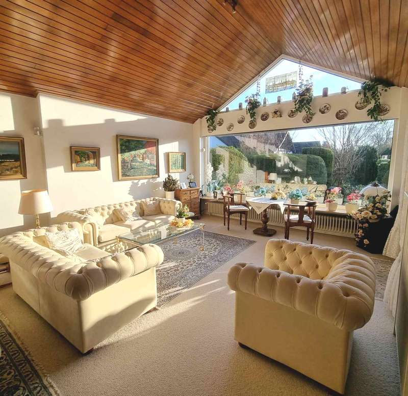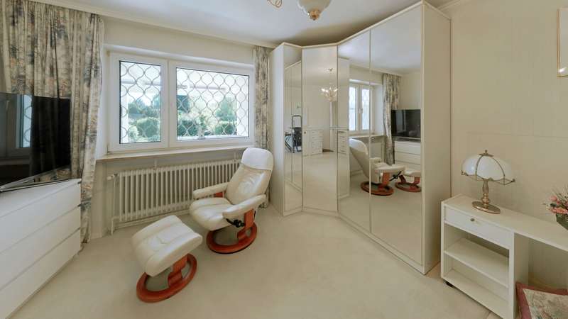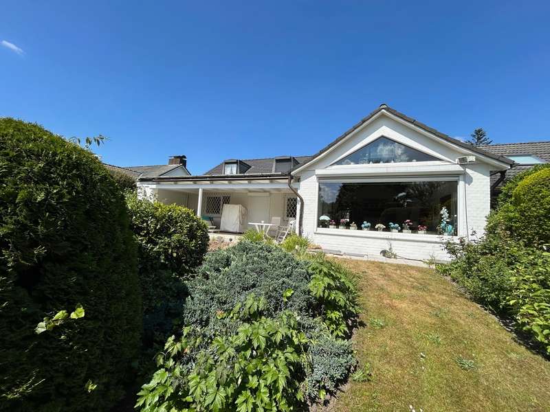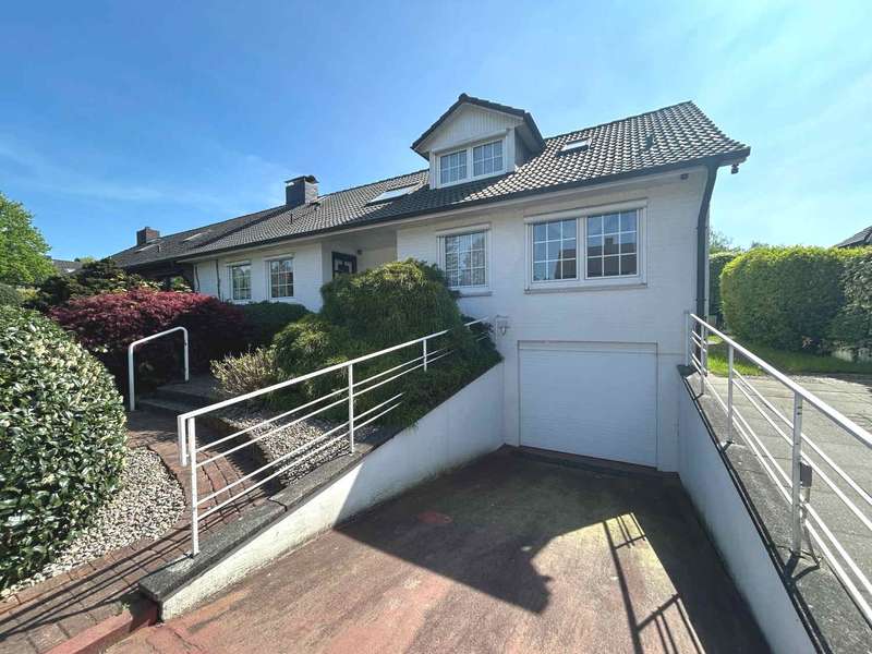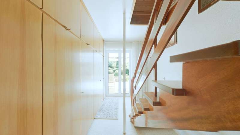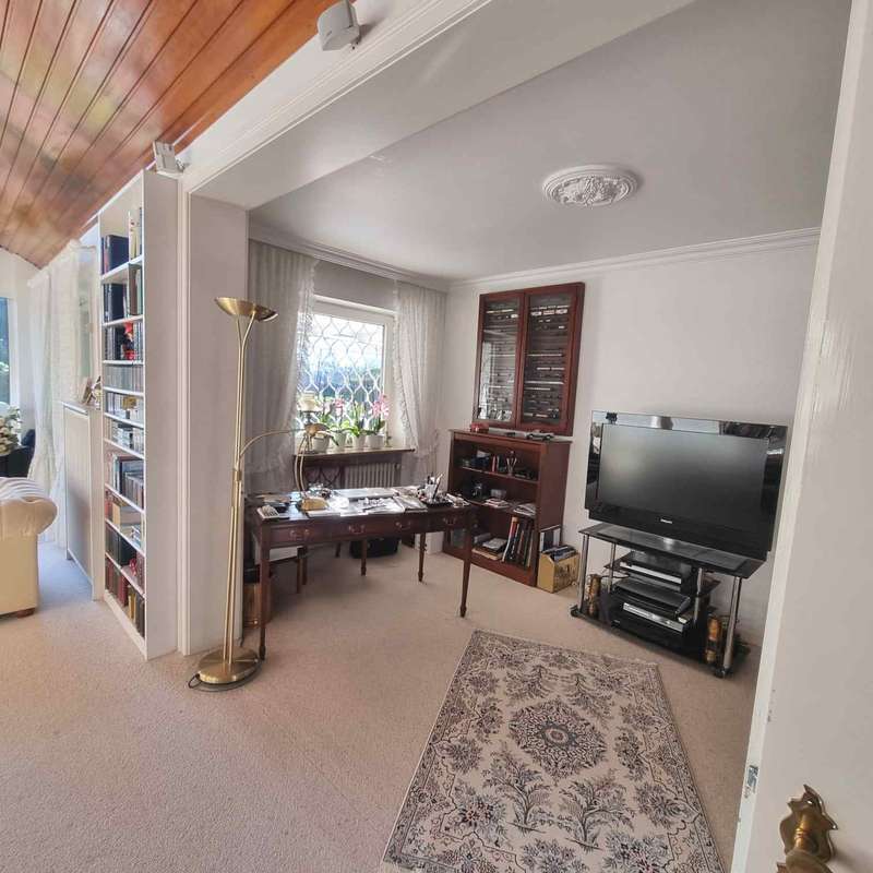 The semi-detached house on offer was built in 1966 and extended in 1974 with a loft conversion. With a living space of approx. 172 m² and a plot size of approx. 635 m², this house offers the perfect retreat for you and your family. The property is in a prime cul-de-sac location on the Kollauwanderweg and offers an unobstructed view of the countryside. The street-side entrance leads into the hallway, from which you can access the rooms on the first floor. The large living/dining room with panoramic windows offers access to the covered terrace and the garden. On cooler days, the open fireplace provides a cozy atmosphere. On the first floor there are two further rooms, a kitchen, a full bathroom with window and a guest WC. An open wooden staircase leads to the converted attic. There are two further rooms and a shower room. There is also a large storage room in the attic. The property has a full basement. In addition to the underground garage, utility and storage rooms, there is also a large hobby room with sauna in the basement. The double-glazed plastic windows are fitted with electric shutters. There is a photovoltaic system on the roof, which supports the household electricity supply. There is space for one car in the underground garage and another on the plot. The excellent location of the property is particularly noteworthy. It is located in one of the most sought-after streets in the district and directly on the Kollauwanderweg. The adjoining owners share an additional parcel of grassland with a total size of approx. 5,893 m² in this area, so that the view remains unobstructed. Have we piqued your interest? Then please contact us and arrange a viewing appointment!