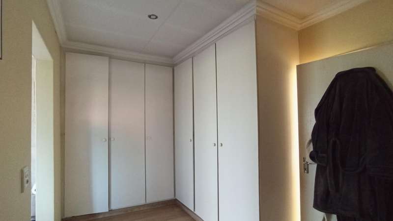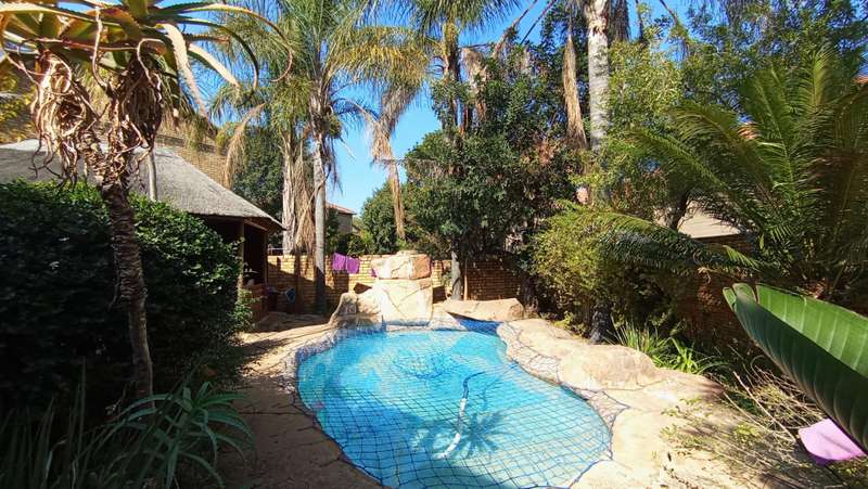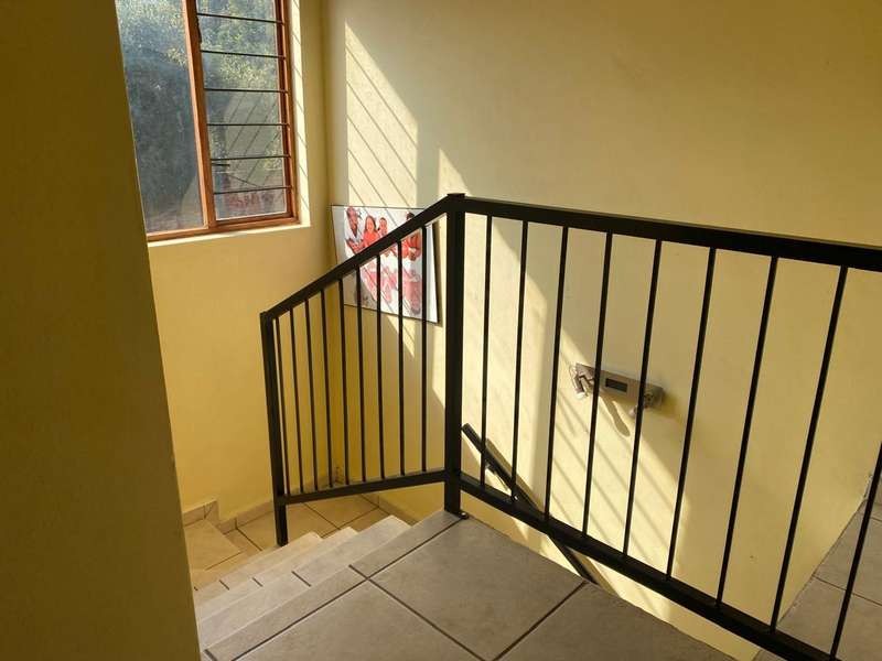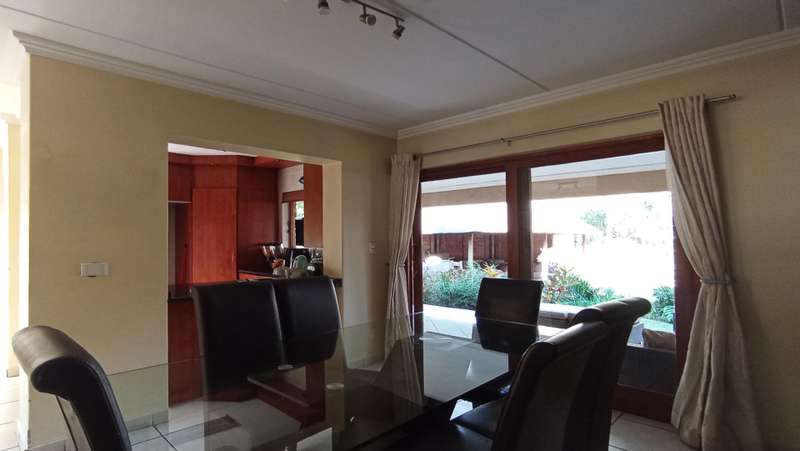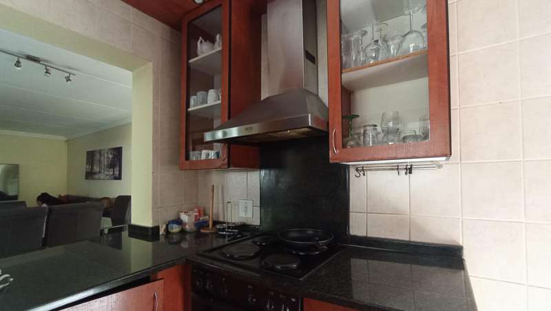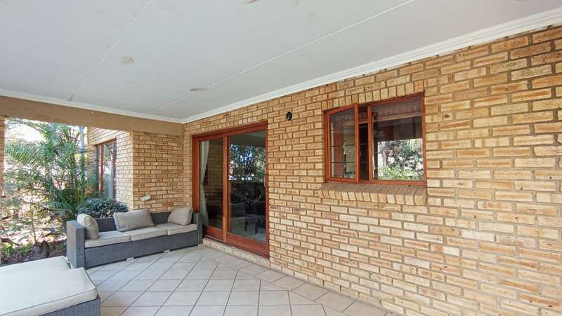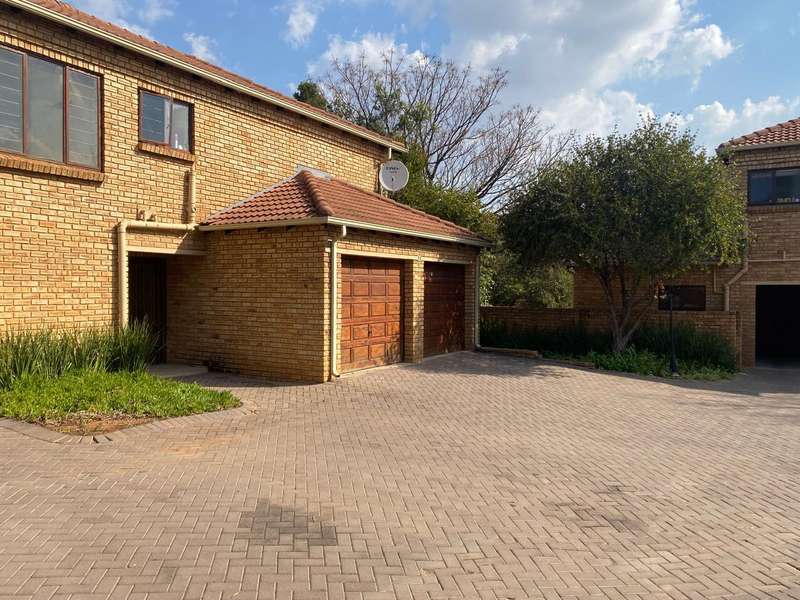 This house has it all. It is situated in a small complex in Craigavon which is conveniently located close to Cedar Square and has access to the very bottom end of Cedar Road allowing people to miss all the Fourways traffic. On entry into this house is the entrance hall that has been used as an office. Around the corner it leads into an open plan lounge, dining area and kitchen. The granite kitchen has a counter convenient for meal prep and feeding the kids. There is an electric stove with an extractor hood and space for a single fridge. Attached to the kitchen is the scullery with space for 2 appliances, a pantry cupboard and the back door that leads to the yard to hang the washing. There are sliding doors leading from the dining area onto a big covered patio, which overlooks an entertainers lapa and small pool. To complete the downstairs is the double garage and a guest loo. Up the stairs are 2 double bedrooms that share a full bathroom. This bathroom has a bath, shower, loo and basin. There is a very large main bedroom en suite with a dressing area. This bathroom consists of a corner bath, shower, loo and basin. All the bedrooms have laminate floors and lead onto the balcony with views over the trees. This is a family friendly complex with children playing in the roadways. There are many schools in the area including Crawford Fourways, Fourways High, and Broadacres Academy to name just a few