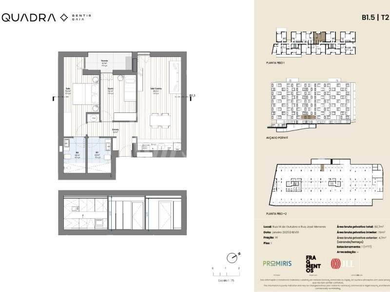 Apartamento T2 novo, com 76 m2 de área bruta privativa, varanda e estacionamento privado, inserido no condomínio Quadra, em Vila Nova de Gaia, no Porto. Os apartamentos possuem cozinha totalmente equipada com eletrodomésticos Siemens, ar condicionado, videoporteiro, muita luminosidade e amplas áreas. A fachada do edifício, inspirada na arquitetura do Norte de Portugal, apresenta um design robusto que combina pedra de granito, azulejo e reboco, contrastando com elementos mais leves como o vidro e a caixilharia de alumínio. Localizado no coração de Vila Nova de Gaia, o QUADRA encontra-se próximo de diversas comodidades urbanas, incluindo o El Corte Inglés, centros comerciais, escolas, hospitais e uma variada oferta de serviços e comércio local. A proximidade ao centro histórico e a diversos locais de lazer, cultura e entretenimento permite aos moradores explorar a cidade de forma sustentável, seja a pé, de bicicleta ou utilizando a excelente rede de transportes públicos, incluindo o metro. A localização privilegiada facilita também as deslocações para o Porto, enquanto as vistas para o rio Douro, o Jardim do Morro e a icónica Ponte D. Luís I proporcionam um cenário inspirador para o quotidiano dos residentes. O QUADRA é ideal para quem deseja viver a cidade em pleno, com o máximo de conveniência para um dia-a-dia ativo e dinâmico. Categoria Energética: A #ref:86189