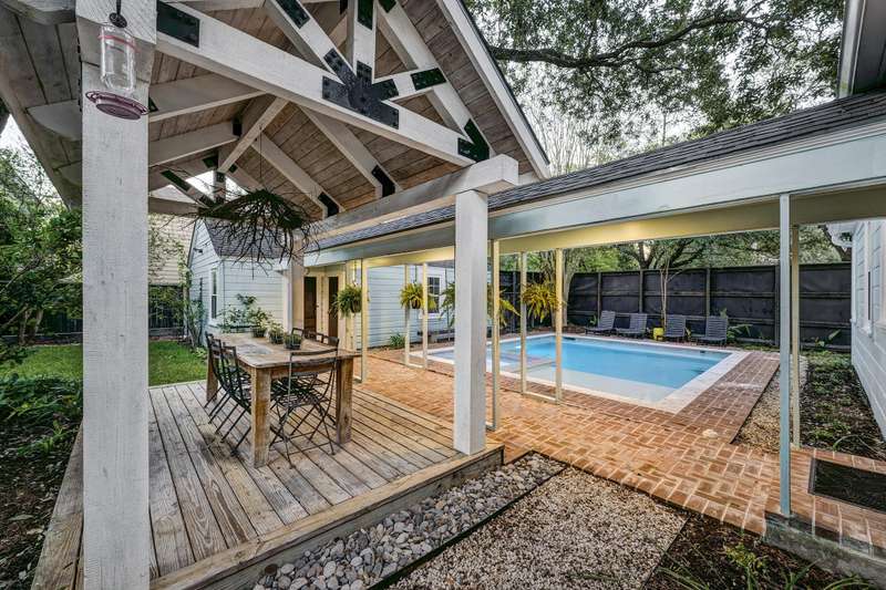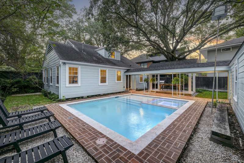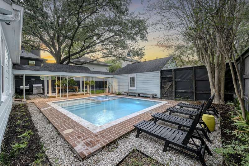 Situated on a coveted corner lot in Southampton area, this charming 1941 (HCAD) Federal-style home beautifully blends timeless character with extensive 2017 updates! All mechanical, electrical, and plumbing systems were replaced, along with new Trane HVAC units, PEX plumbing, wiring, roof, & double-pane windows. The gorgeous kitchen features a Wolf range, Sub-Zero refrigerator, Bosch dishwasher, marble backsplash, & honed granite counter—perfect for gathering with family & friends. Enjoy effortless entertaining in the inviting backyard oasis with sparkling pool, hot tub, covered cabana, and gas grill! A first-floor bedroom & full bath offer flexibility for guests plus there is a home office! Original shiplap walls, vintage lighting, & thoughtful updates preserve the home’s warmth & historic charm. Minutes from the Medical Center, Rice University, Rice Village, & Hermann Park Golf Course, this gem combines modern luxury with classic Southampton appeal. Tour it today! All info per Seller