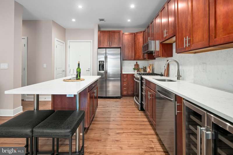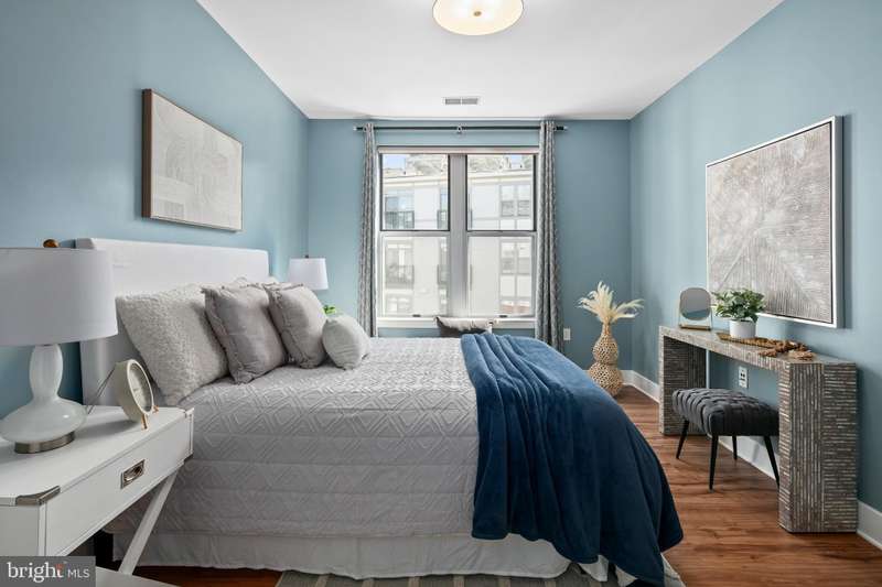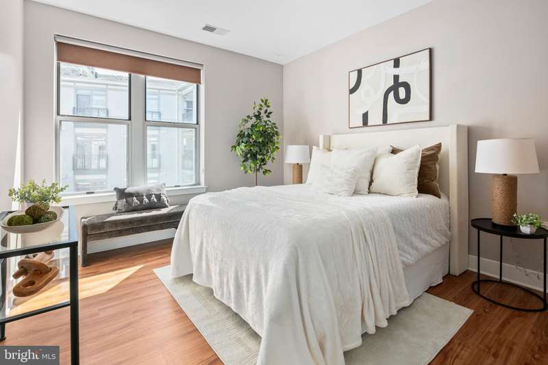 WHAT MAKES THIS UNIT STAND OUT? Kitchen and primary bathroom fully renovated in 2020 including new appliances, counters, walk-in shower, dual-sink vanity, heated bathroom floor, and plumbing fixtures. Additional updates include upgraded flooring throughout, full paint, HVAC (2018), water heater (2020), full-size washer/dryer (2020), upgraded Lutron lighting throughout, custom Elfa closet system in the primary bedroom's walk-in closet, beverage/wine refrigerator, Nest smart thermostat, and upgraded tiles in the secondary bathroom. The entire primary bedroom has been specially treated with in-wall soundproofing material to ensure a peaceful sanctuary and restful night's sleep. The condo overlooks the professionally landscaped courtyard and showcases a juliet balcony. One full size, conveniently located parking space included (#71 on G2).