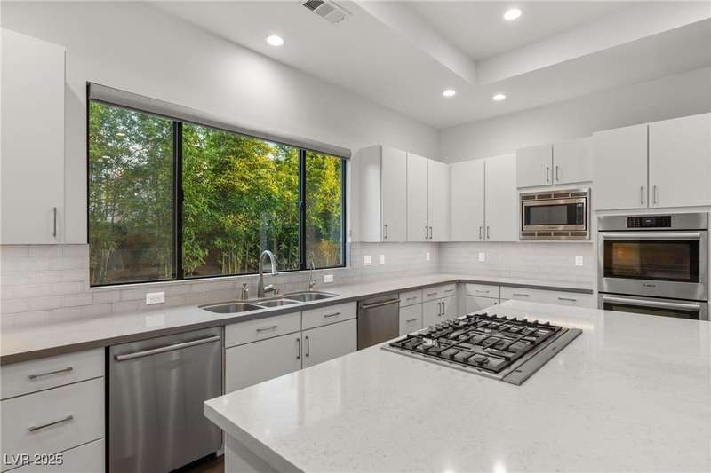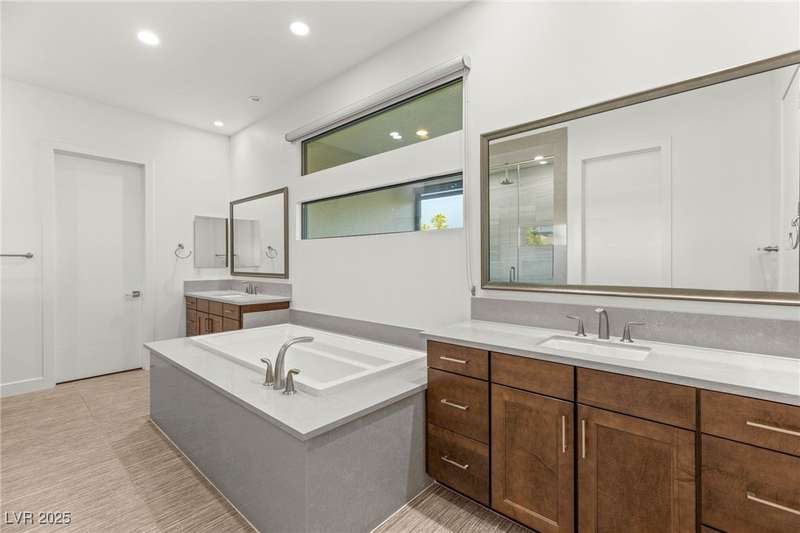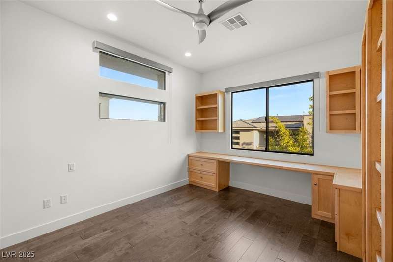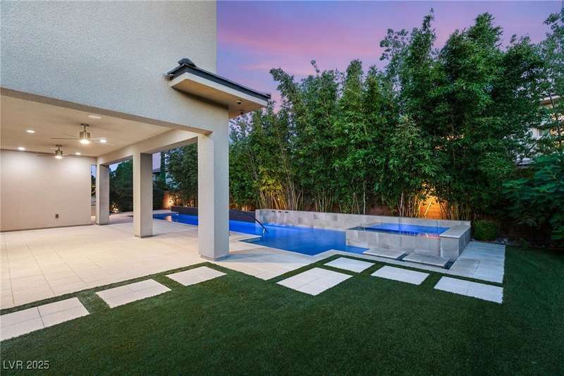 Incredible opportunity to discover elevated desert living on a coveted corner lot w/in Summerlin South’s prestigious guard-gated community, The Ridges for under 2.5M! With an emphasis on clean lines, natural light, & refined design, this home blends timeless craftsmanship w/modern luxury. Mountain views are captured through perfectly placed windows, flooding every room with natural light. This Williams Lyons two story offers a gourmet kitchen that is a chef's dream, featuring an oversized island w/abundant storage, custom cabinetry, Subzero & Bosch appliances and dual dishwashers. The primary suite offers a serene retreat w/a spa-inspired bath, custom walk-in closet, sitting area, & private balcony. The great room transforms into a theatre w/a pro-grade cinema projector & drop-down screen. The backyard is a private oasis boasting a sparkling pool, spa, & ample outdoor living space. More than just a home, this is a destination — an invitation to live in unparalleled luxury!